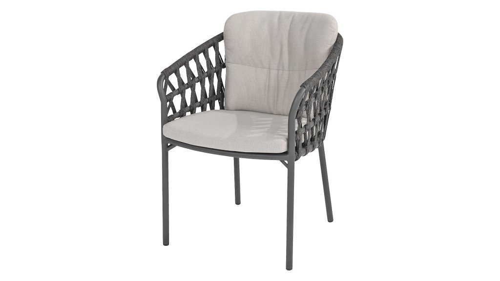 Das Design des Albareto strahlt Eleganz aus, mit einem Rahmen, der komplett in einem anthrazitfarbenen Aluminiumfinish gehalten ist. Dadurch ist der Stuhl nicht nur leicht und einfach zu bewegen, sondern sorgt auch für einen robusten und modernen Look, der sich mühelos in verschiedene Gartenstile einfügt. Die anthrazitfarbene Seilbespannung rund um das Gestell macht den Stuhl besonders attraktiv. Egal, ob Sie einen minimalistischen Garten haben oder eine luxuriöse Umgebung schaffen möchten, der Albareto passt sich mühelos an.