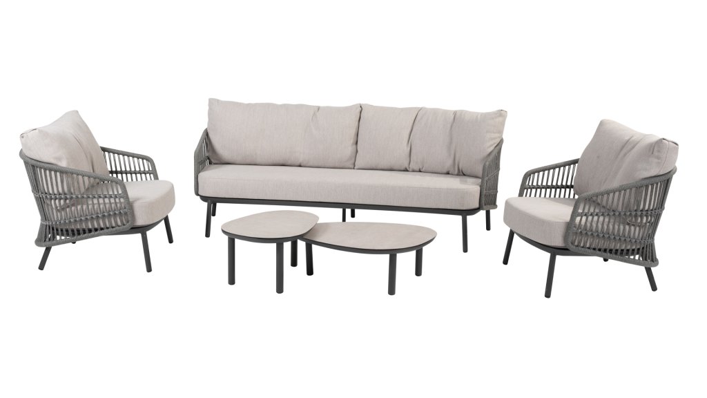 Materialien von höchster Qualität: ein robustes Rope- und Aluminiumgestell, kombiniert mit langlebigen Allwetterkissen, die jeder Saison mühelos standhalten.