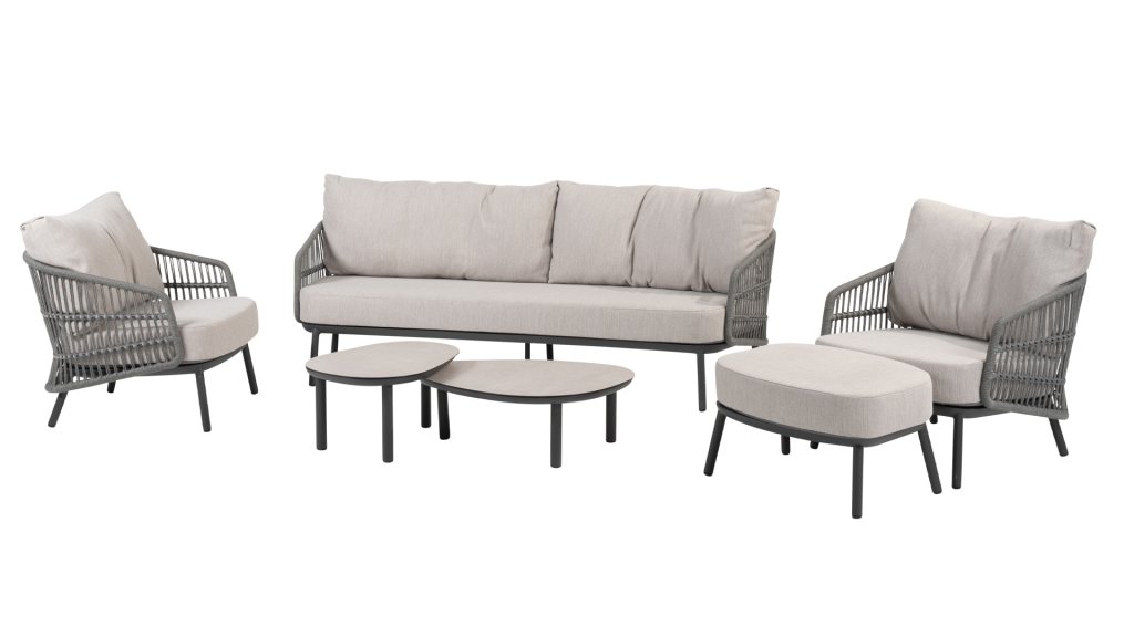 Materialien von höchster Qualität: ein robustes Rope- und Aluminiumgestell, kombiniert mit langlebigen Allwetterkissen, die jeder Saison mühelos standhalten.