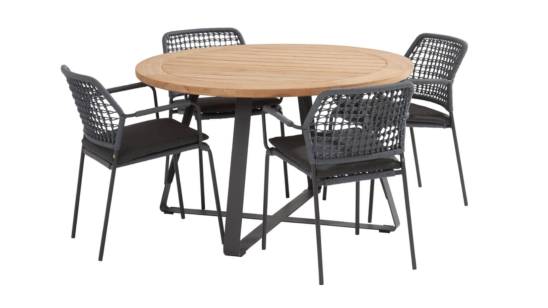 1 x Taste Basso Tisch Ø 130cm Teak-Alu