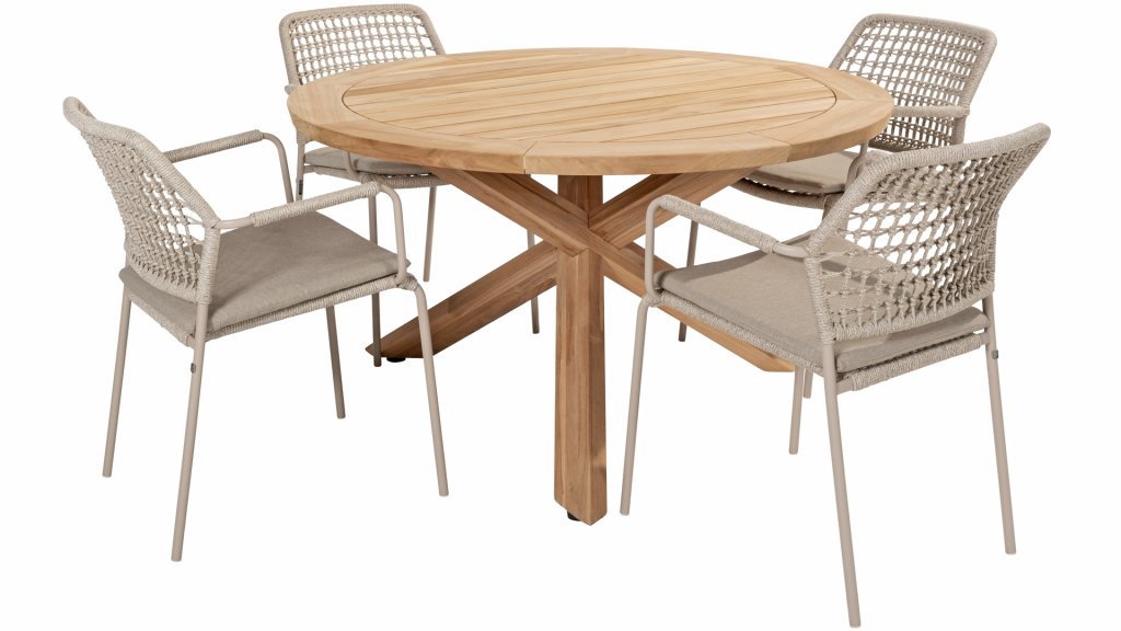 Das Flaggschiff der Kollektion, so kann man diesen Tisch ruhig bezeichnen. Das hochwertige Teakholz in Kombination mit dem schönen Kreuzfuß machen diesen Taste by 4Seasons Prado Ø130cm Tisch zu einem Schmuckstück. Er lässt sich mit nahezu jedem Esszimmerstuhl aus unserer Kollektion kombinieren, sodass für jeden Geschmack etwas dabei ist. Optional kann er mit Prado Lazy Susan kombiniert werden. Die Platte ist sowohl in Teakholz als auch in Keramik erhältlich. Der Prado mit Teakholzplatte ist mit den Tischbeinen Teak, Latte und Anthrazit erhältlich. Sie lieben Keramik? Dann entdecken Sie hier den Prado Keramik mit den Tischbeinen Terre & Latte.