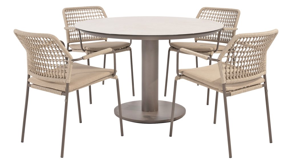 Lernen Sie Taste Sarah kennen, den runden Tisch, der Eleganz und Funktionalität mühelos vereint. Dieser schöne Tisch ist ein echter Hingucker in jedem Garten oder Essbereich. Sein rundes Design schafft eine gemütliche, einladende Atmosphäre, in der alle am Tisch in Kontakt bleiben. Die hochwertig bedruckte Keramikplatte sorgt nicht nur für eine luxuriöse Optik, sondern ist auch außergewöhnlich robust, kratzfest und pflegeleicht. Das zentrale Bein bietet maximale Beinfreiheit und verleiht dem Tisch einen modernen, luftigen Look. Taste by 4 Seasons Outdoor Sarah ist in zwei Ausführungen und zwei Farben erhältlich. Der Tisch ist in zwei Größen erhältlich: 120x75cm (Dining) und 130x69cm (Low Dining) in den Farben Latte und Terre. Entdecken Sie sie unten: