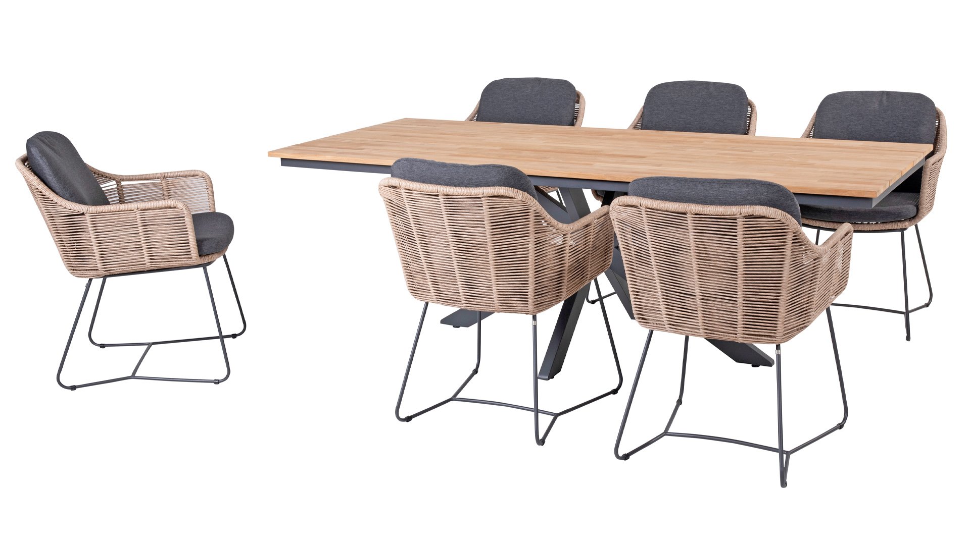 Beautiful, Bold, Belmond. Eine gewagte Kombination aus einem auffälligen Untergestell mit den elegant abgerundeten Ecken des Rahmens und einem geradlinigen Rope-Muster in Anthrazit oder Beige. Taste 4Seasons Belmond hat all das - genießen Sie diese umfangreiche Serie