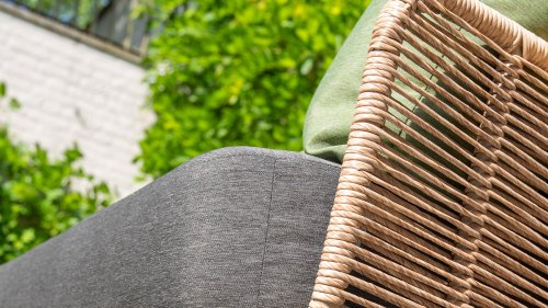 Cord hat eine Wasseraufnahme von 0%. So hat Feuchtigkeit keine Chance, sie perlt förmlich ab. Das Material kann nach einem Regenschauer mit einem Tuch abgewischt werden, danach ist es trocken. Die Cord ist nicht nur wasserabweisend, sondern auch salz- und chlorunempfindlich. Sehr schön, wenn Sie zum Beispiel Ihre Liegen neben den Pool stellen möchten oder am Meer wohnen. Die Reinigung ist ein Kinderspiel. Ein wenig Wasser und Seife reichen aus, um die Schnur zu reinigen. Ideal, wenn Sie nicht zu viel Zeit mit der Wartung verbringen möchten. Cord besteht aus fast den gleichen Komponenten wie Geflecht und Rope und ist damit ein witterungsbeständiges und starkes Material, das perfekt für den Einsatz im Freien geeignet ist. Es wurde unter allen möglichen Wetterbedingungen getestet und hat diesen Test natürlich mit Bravour bestanden. Das Cord ist zu 100 % recycelbar. Das macht es zu einem relativ langlebigen Material, das gleichzeitig sehr stark ist. Eine willkommene Ergänzung unseres Sortiments und ein Material, das aufgrund seiner fantastischen Eigenschaften jahrelang draußen bleiben kann