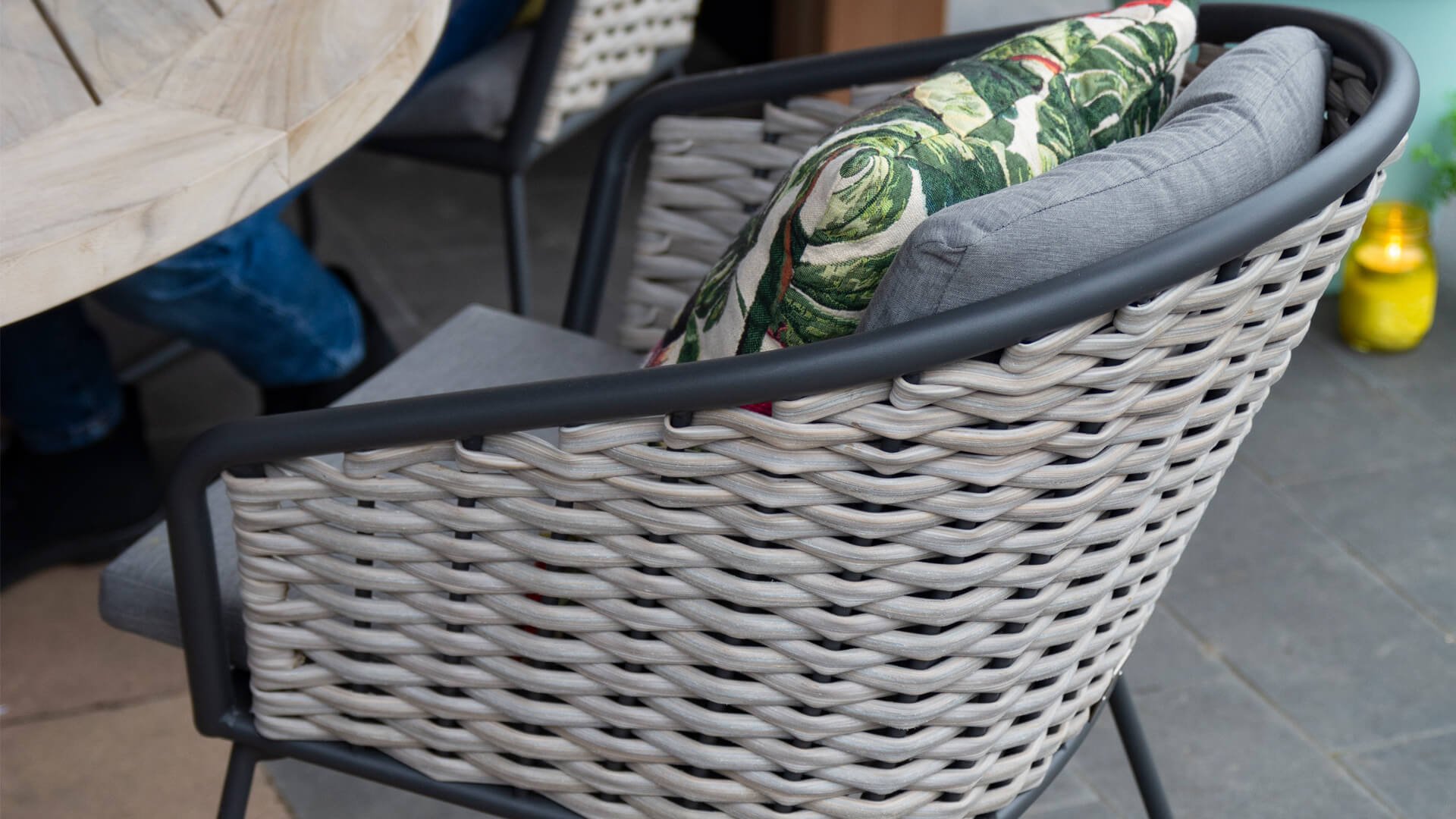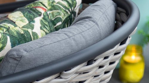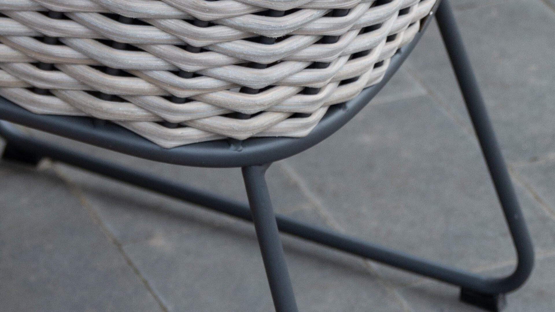 Der Mädchenname Bo bedeutet sanft und freundlich. Das gilt natürlich auch für die neue Perle in der Taste Kollektion. Das Geflecht des 4SO Bo hat die Ausstrahlung von Weidenruten. Natürlich anzusehen, aber in der bekannten soliden Qualität, die Sie von Taste by 4SO gewohnt sind. Umrahmt wird dieses Geflecht von einem Anthrazit, pulverbeschichteten Rahmen mit geschwungenen Linien, der dem Bo das schicke, moderne Aussehen verleiht. Wird der Rahmen traditionell unter dem Geflecht versteckt, hat der Designer für den Bo das Flechtwerk sozusagen in dem Rahmen eingerahmt, was man eben sehen soll. Das macht die Möbel besonders spannend. Durch das freundliche Format eignet sich Bo auch für einen Balkon oder eine kleinere Terrasse.