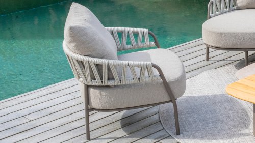 Calma von Taste by 4 Seasons – Graufarbenes Rope, Terre-farbenes Gestell und ultimativer Sitzkomfort.