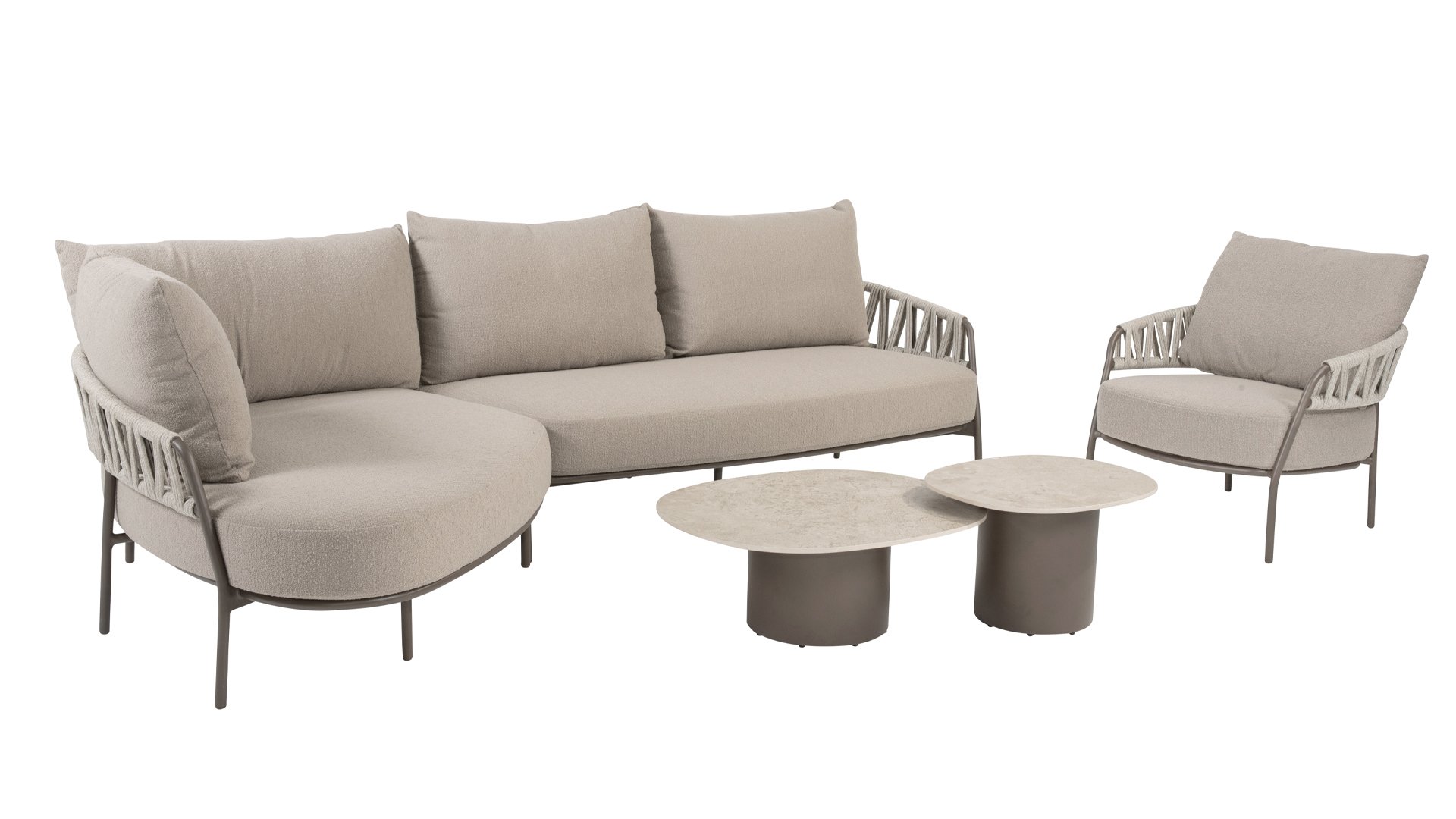 Calma von Taste by 4 Seasons – Graufarbenes Rope, Terre-farbenes Gestell und ultimativer Sitzkomfort.
