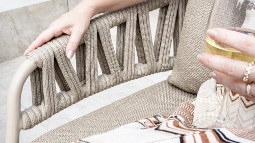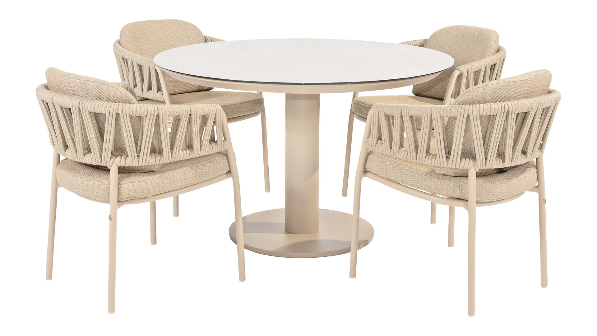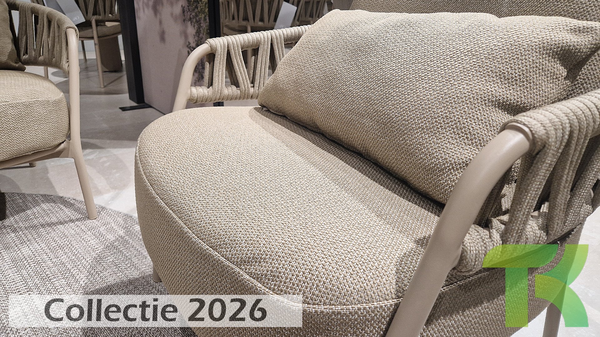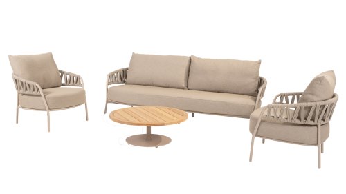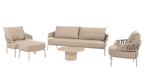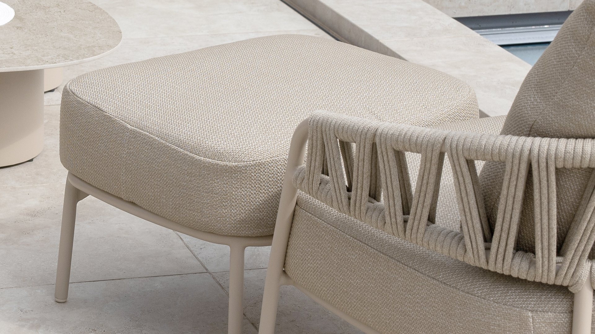 Calma Lounge-Set von Taste by 4 Seasons – Taupefarbenes Seil, lattefarbenes Gestell und höchster Sitzkomfort.