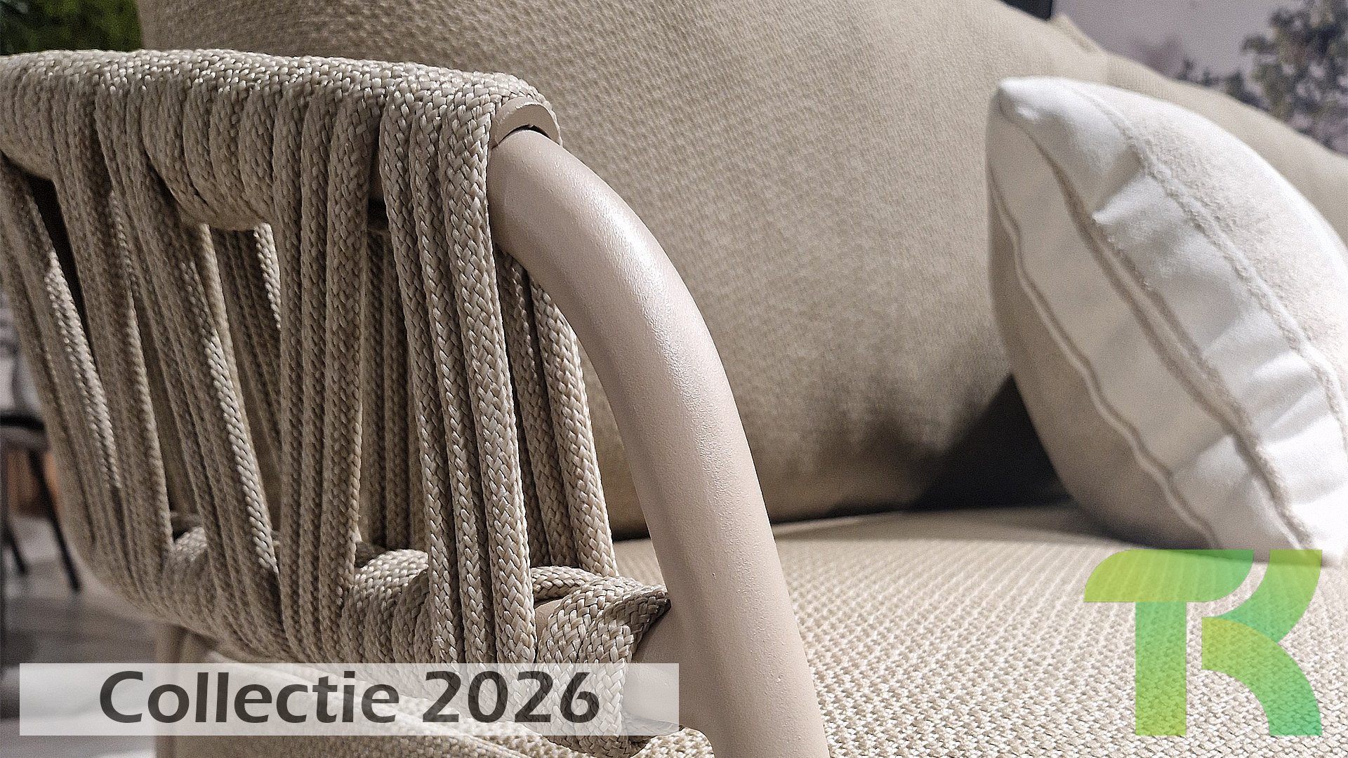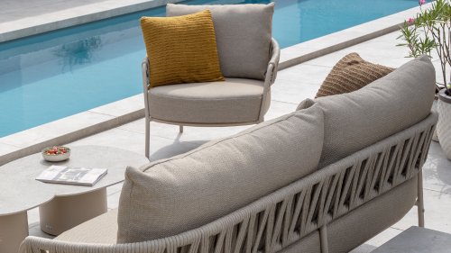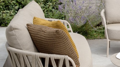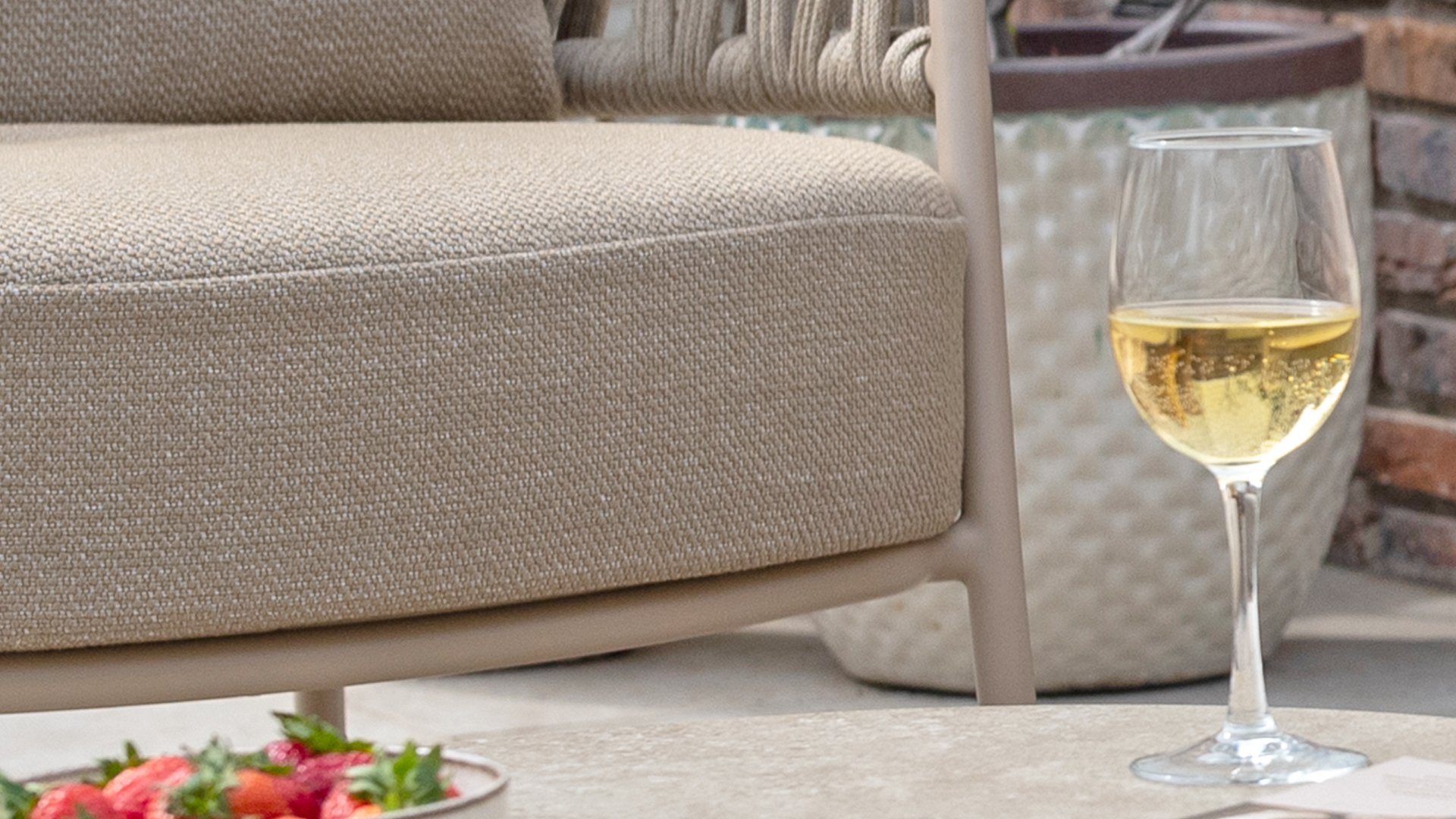Taupefarbenes Rope und lattefarbenes Gestell: Eine einzigartige Farbkombination für einen warmen, modernen Look in Ihrem Garten.