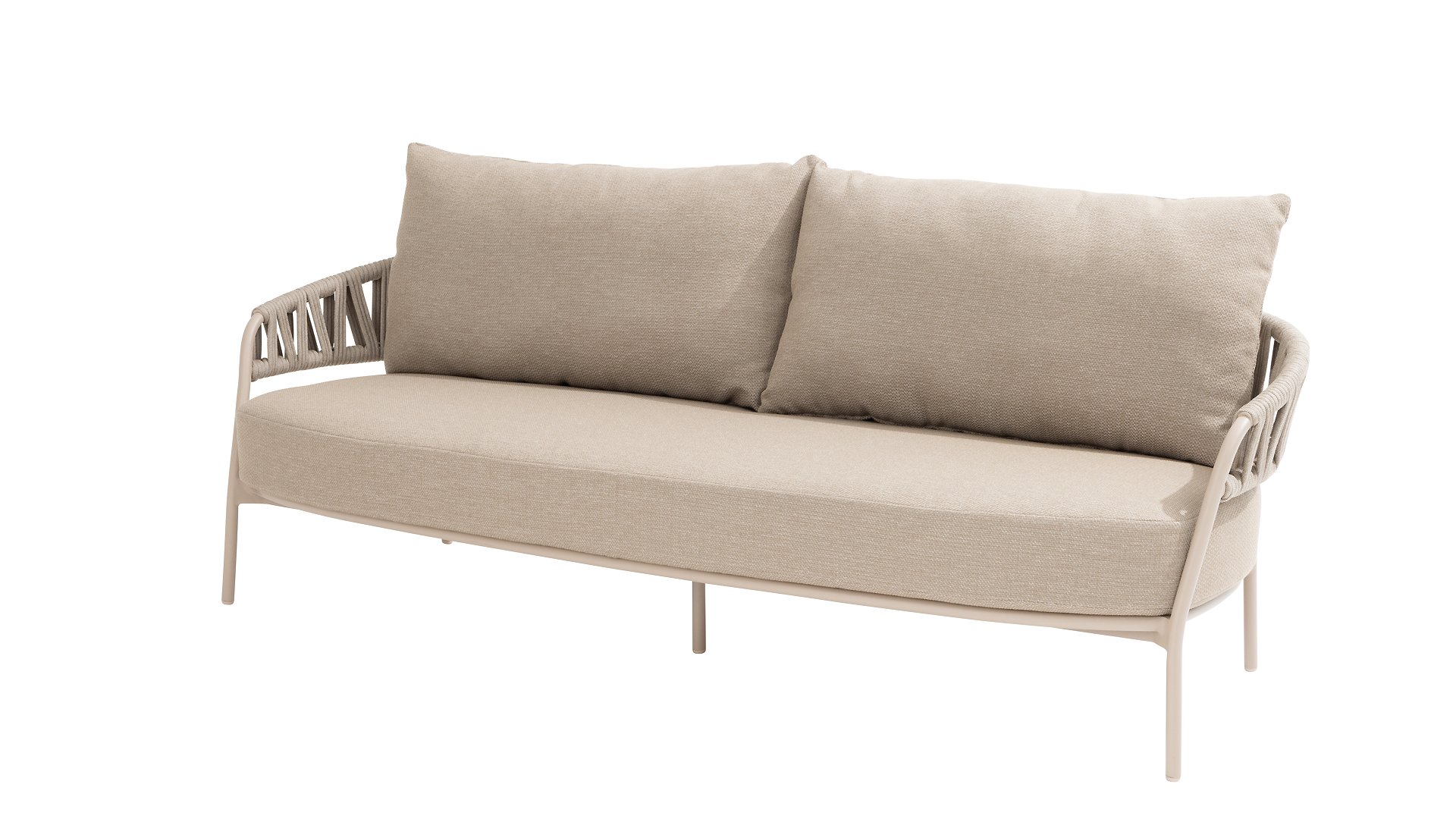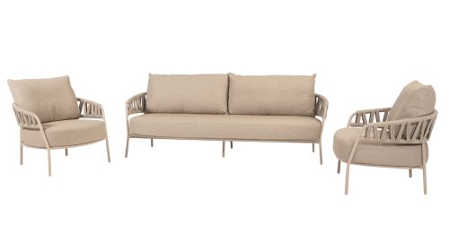 Entdecken Sie das Taste Calma Lounge-Set der renommierten niederländischen Qualitätsmarke Taste by 4 Seasons. Dieses exklusive Lounge-Set wurde für alle entworfen, die höchsten Sitzkomfort mit stilvollem Design verbinden möchten. Der Name Calma ist Programm: Dieses Set bringt Ruhe und Harmonie in Ihren Garten oder auf Ihre Terrasse. Das Besondere an der Calma-Serie ist die taupefarbene Seilstruktur (Rope), die Rückenlehne und Seiten elegant einrahmt, während das lattefarbene Aluminiumgestell für einen modernen, leichten Look sorgt. Zusammen schaffen diese Farben eine warme, natürliche Atmosphäre, die zum Entspannen und Abschalten einlädt. Der hervorragende Sitzkomfort macht es zum idealen Ort für lange Sommerabende oder ruhige Momente mit einem Buch und einem Getränk.