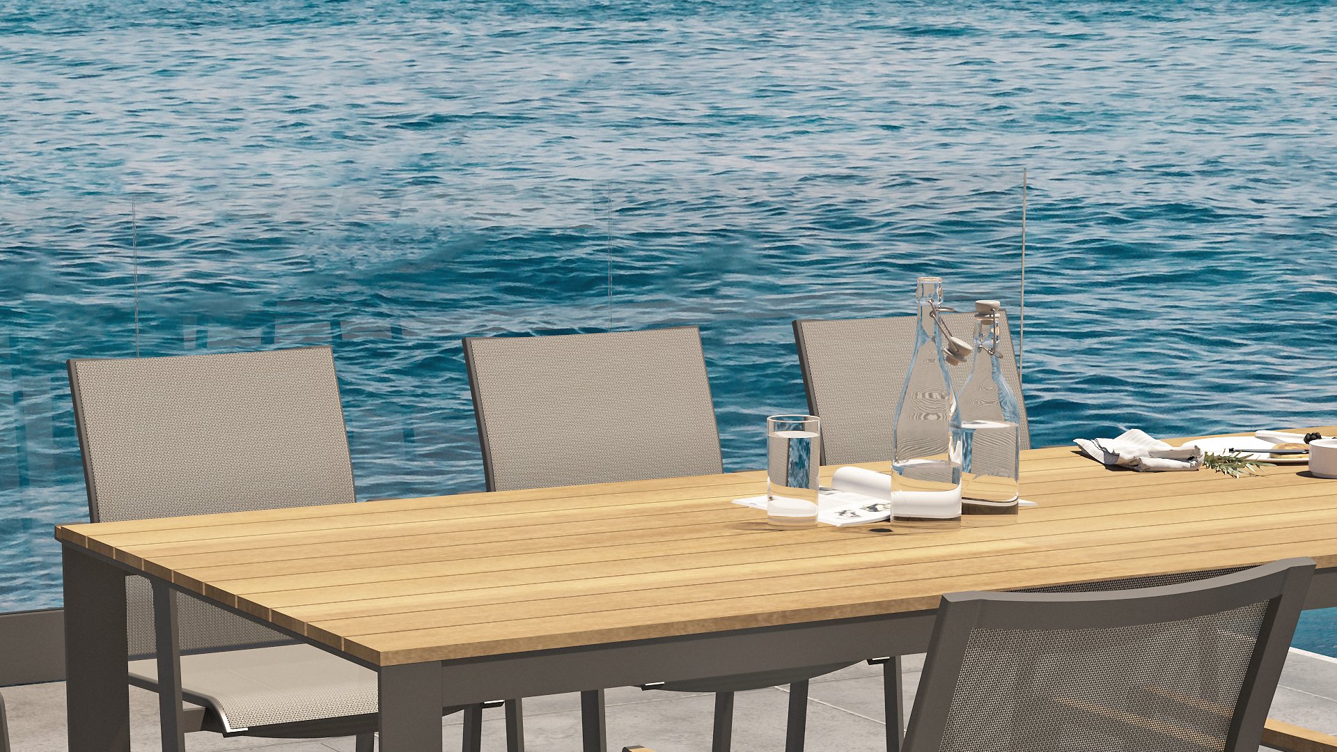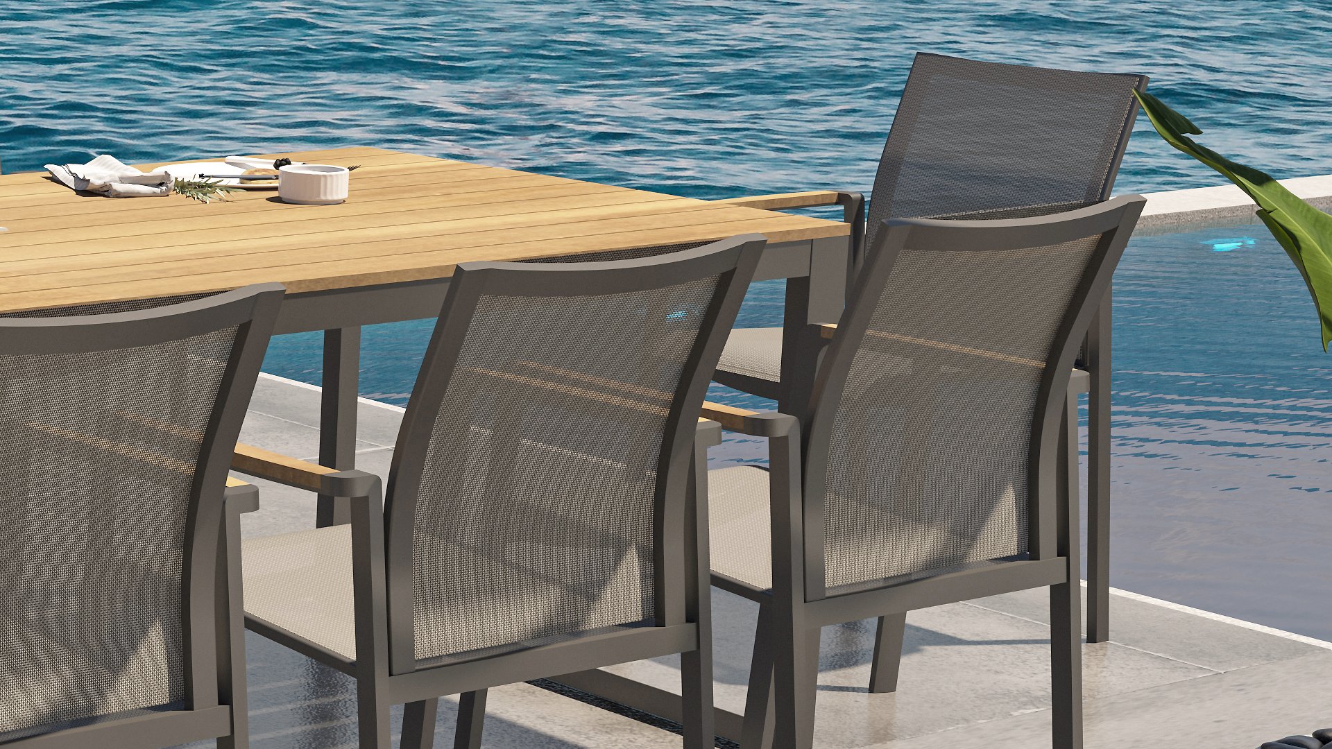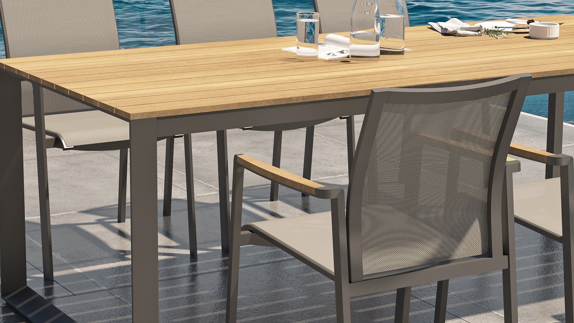 | Materialien Gartenstühle | Pulverbeschichtet Aluminium/Stahl, Teak |