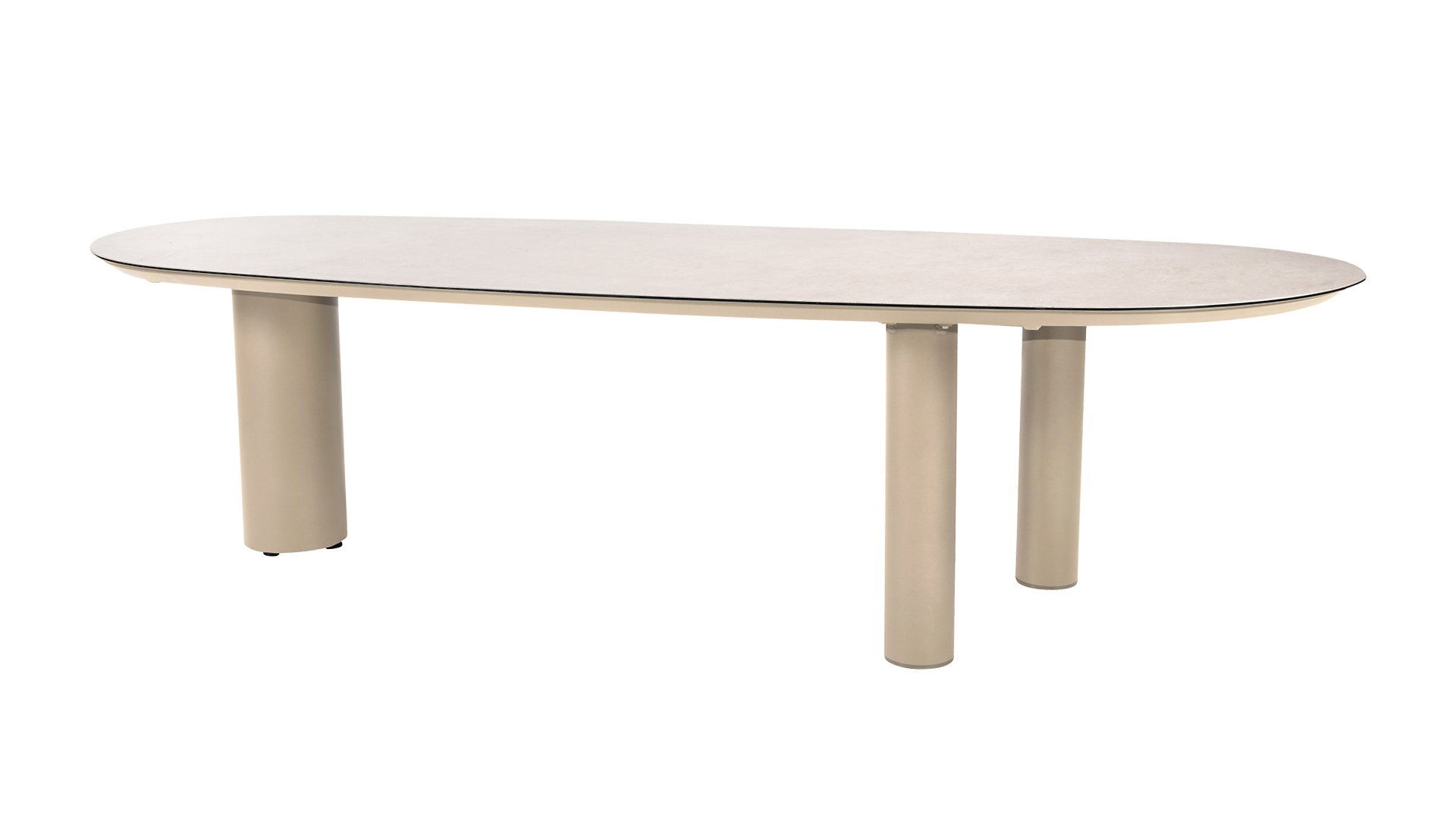 Die markante mangoförmige Tischplatte verleiht dem Denia Tisch eine verspielte, organische Silhouette, die sofort ins Auge fällt. Erhältlich in zwei Farben – Latte und Terre – und zwei Größen – 290 x 110 x 75 cm und 240 x 105 x 75 cm. Die Tischplatte besteht aus Keramik auf Glas, einer robusten und pflegeleichten Kombination, die kratz-, hitze- und fleckenbeständig ist. Das dreibeinige Untergestell aus pulverbeschichtetem Aluminium sorgt für maximale Stabilität und einen modernen Look. Alle Optionen der Tischserie Taste Denia finden Sie unten: