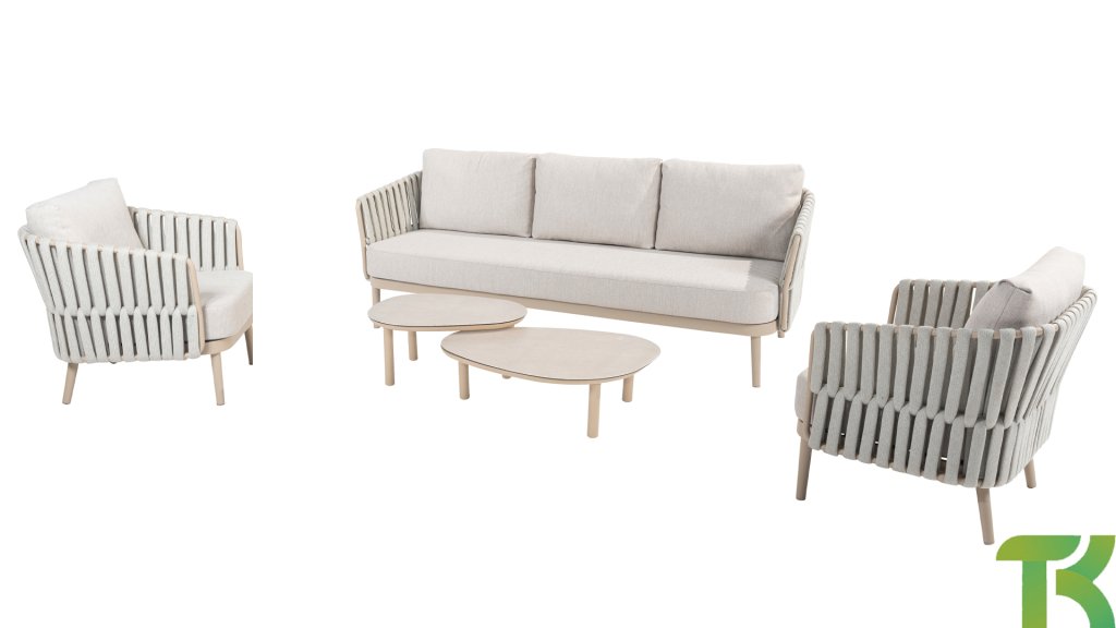 | Materialien Loungegruppe | Rope, Pulverbeschichtet Aluminium/Stahl |