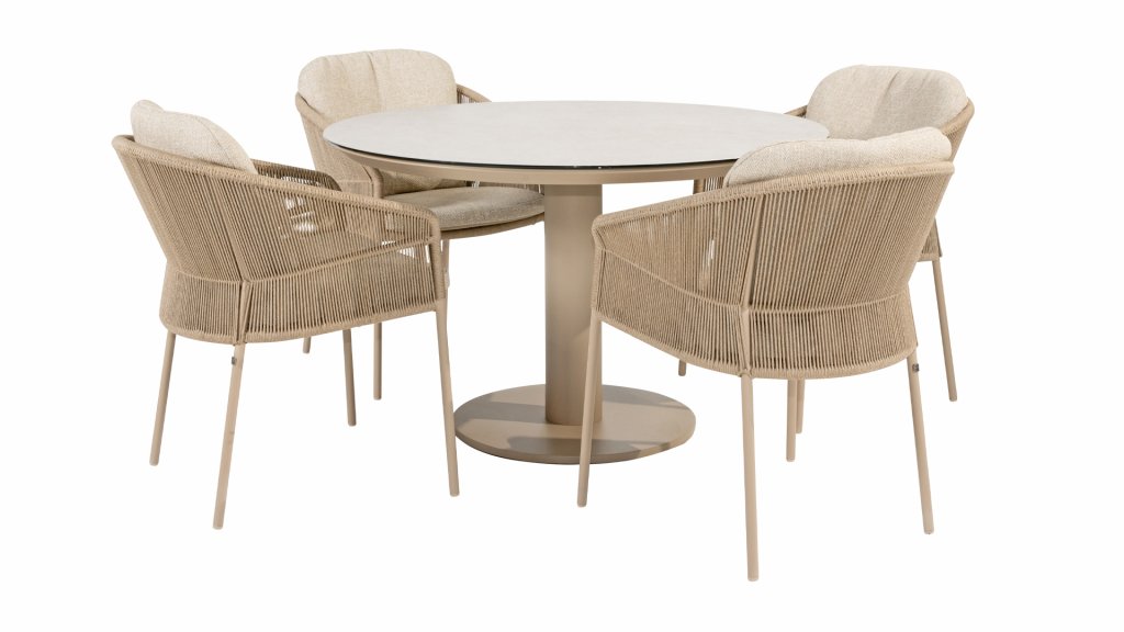 Lernen Sie Taste Sarah kennen, den runden Tisch, der Eleganz und Funktionalität mühelos vereint. Dieser schöne Tisch ist ein echter Hingucker in jedem Garten oder Essbereich. Sein rundes Design schafft eine gemütliche, einladende Atmosphäre, in der alle am Tisch in Kontakt bleiben. Die hochwertig bedruckte Keramikplatte sorgt nicht nur für eine luxuriöse Optik, sondern ist auch außergewöhnlich robust, kratzfest und pflegeleicht. Das zentrale Bein bietet maximale Beinfreiheit und verleiht dem Tisch einen modernen, luftigen Look. Taste by 4 Seasons Outdoor Sarah ist in zwei Ausführungen und zwei Farben erhältlich. Der Tisch ist in zwei Größen erhältlich: 120x75cm (Dining) und 130x69cm (Low Dining) in den Farben Latte und Terre. Entdecken Sie sie unten: