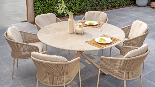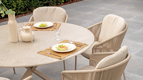 Dieser Tisch ist ein wahres Schmuckstück der Kollektion. Bisher war der Taste Prado Ø160 cm nur mit Teakholzplatte erhältlich. Dieses Jahr ist er auch mit einer Keramikplatte erhältlich. Dies verleiht dem Prado ein völlig neues Aussehen und einen schlichten, industriellen und modernen Look. Die Keramikvariante bietet außerdem einen weiteren großen Vorteil: Keramik ist selbstverständlich pflegeleicht! Der Prado mit Keramikholzplatte ist vergübar mit den Tischbeinen: Terre & Latte. Sie lieben Teakholz? Dann entdecken Sie hier den Prado Teak mit den Tischbeinen: Terre, Teak, Latte und Anthrazit.