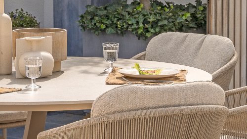 Inspiriert vom zeitlosen Charme Italiens zeichnet sich Florence durch sein dicht gewebtes Seilmuster und die raffinierte Trennung zwischen Rückenlehne und Sitzfläche aus, die einen modernen und eleganten Effekt erzeugen. Die bequemen Kissen bieten hervorragenden Sitzkomfort und machen dieses Esszimmerset perfekt für lange, entspannte Momente im Freien. Erhältlich in zwei eleganten Farben: Taste Florence Dining Terre – ein warmer, erdiger Farbton, der perfekt zu natürlichen Gartenelementen passt. Taste Florence Dining Latte – eine helle, elegante Farbe für einen frischen, sommerlichen Look.