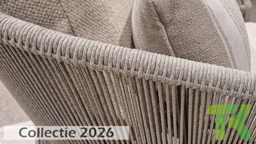 Verleihen Sie Ihrem Stil mit dem Florence Stil. Das wunderschöne Seildesign kombiniert mit luxuriösen Kissen sorgt für die perfekte Kombination aus Stil und Komfort. Genießen Sie ultimative Entspannung und entspannen Sie sich diesen Sommer. Erhältlich in zwei eleganten Farben: Taste Florence Terre Lounge – ein warmer, erdiger Farbton, der perfekt zu natürlichen Gartenelementen passt. Taste Florence Latte Lounge – eine helle, elegante Farbe für einen frischen, sommerlichen Look.
