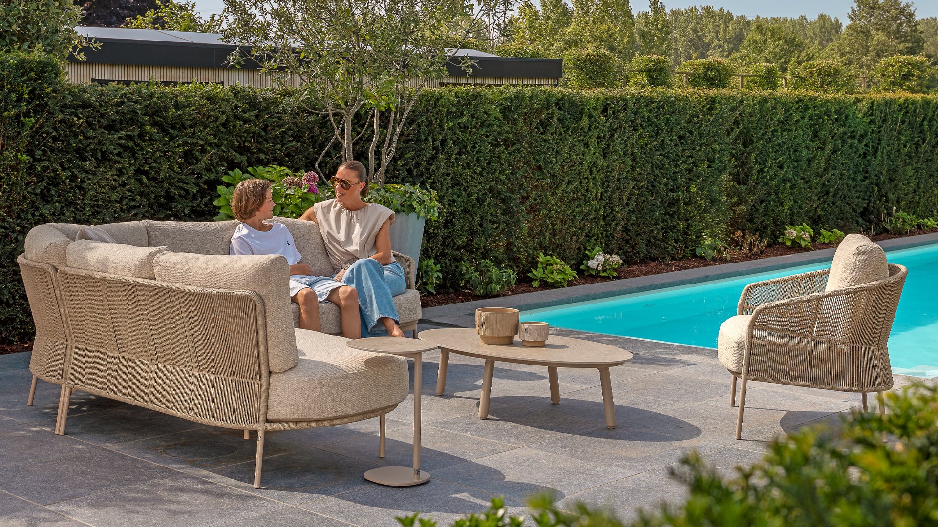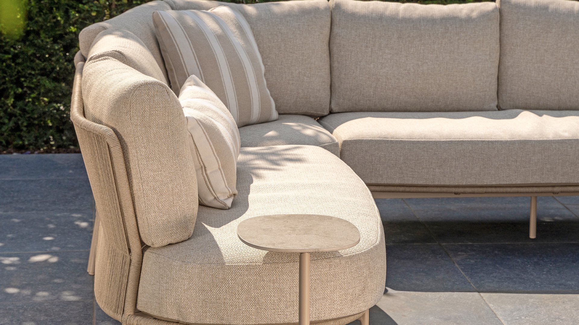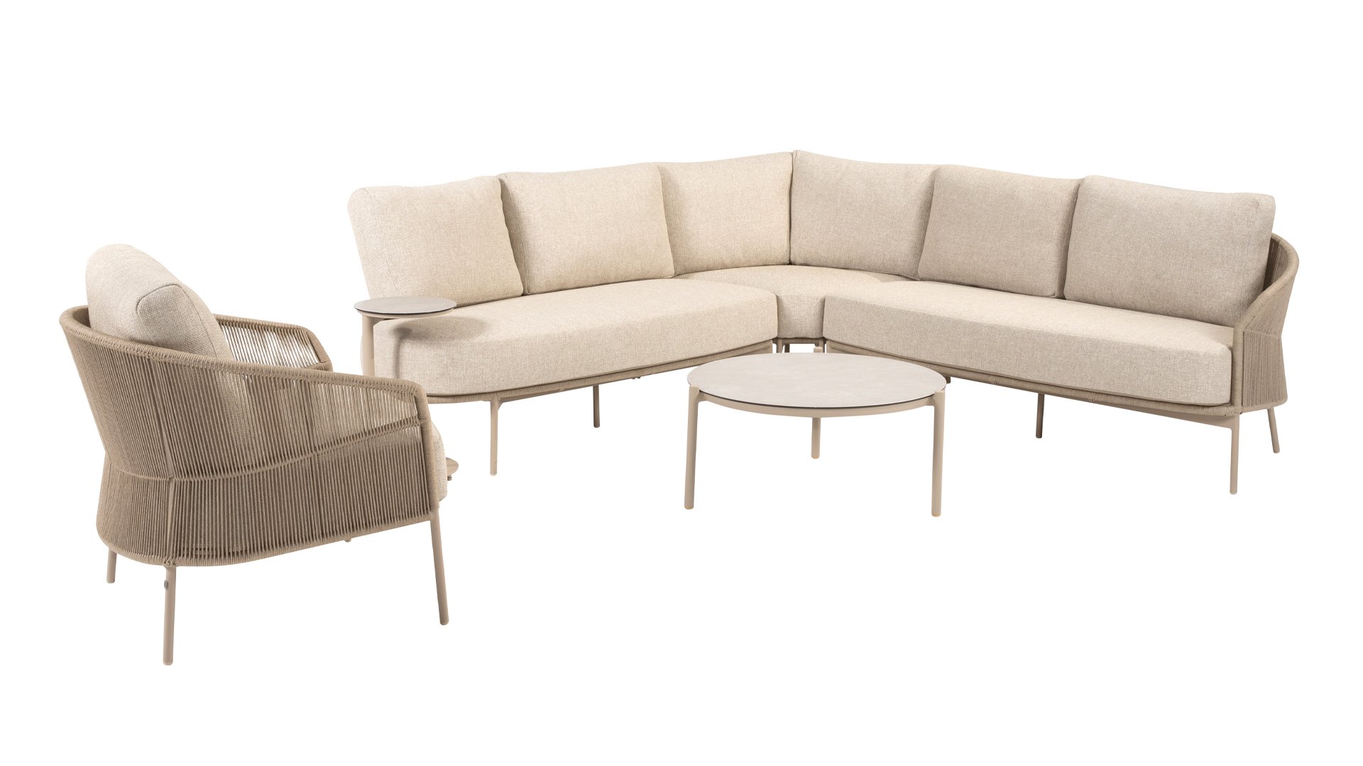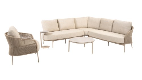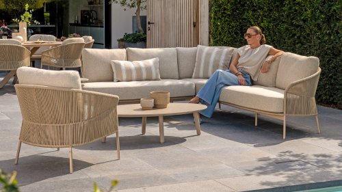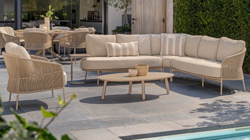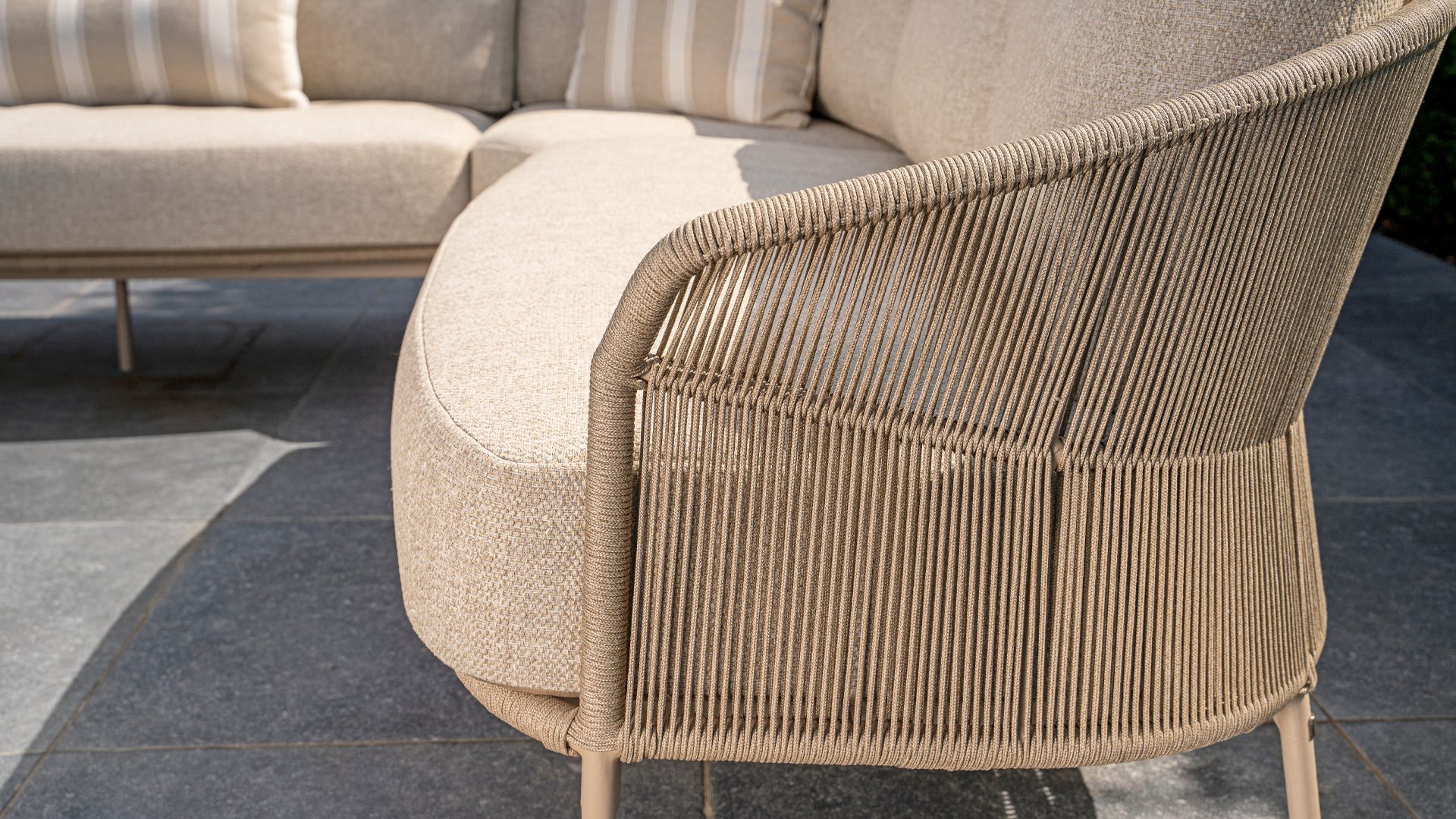 Verleihen Sie Ihrem Stil mit dem Florence Stil. Das wunderschöne Seildesign kombiniert mit luxuriösen Kissen sorgt für die perfekte Kombination aus Stil und Komfort. Genießen Sie ultimative Entspannung und entspannen Sie sich diesen Sommer. Erhältlich in zwei eleganten Farben: Taste Florence Terre Lounge – ein warmer, erdiger Farbton, der perfekt zu natürlichen Gartenelementen passt. Taste Florence Latte Lounge – eine helle, elegante Farbe für einen frischen, sommerlichen Look.