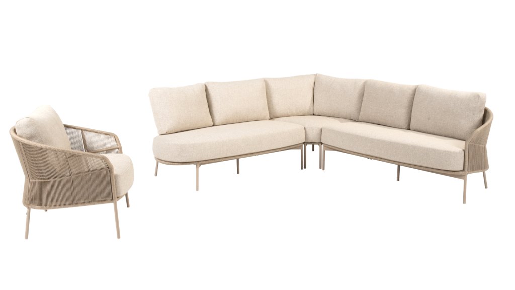 Verleihen Sie Ihrem Stil mit dem Florence Stil. Das wunderschöne Seildesign kombiniert mit luxuriösen Kissen sorgt für die perfekte Kombination aus Stil und Komfort. Genießen Sie ultimative Entspannung und entspannen Sie sich diesen Sommer. Erhältlich in zwei eleganten Farben: Taste Florence Terre Lounge – ein warmer, erdiger Farbton, der perfekt zu natürlichen Gartenelementen passt. Taste Florence Latte Lounge – eine helle, elegante Farbe für einen frischen, sommerlichen Look.
