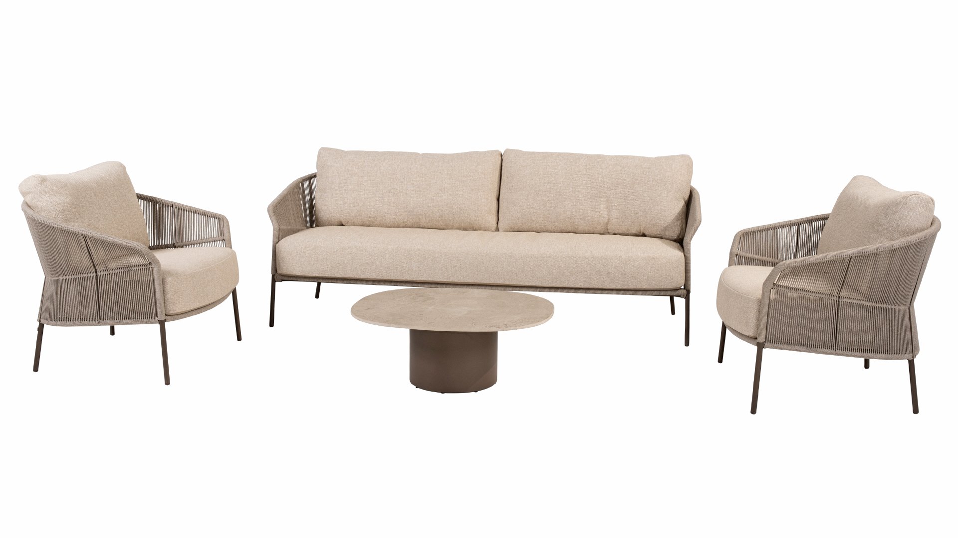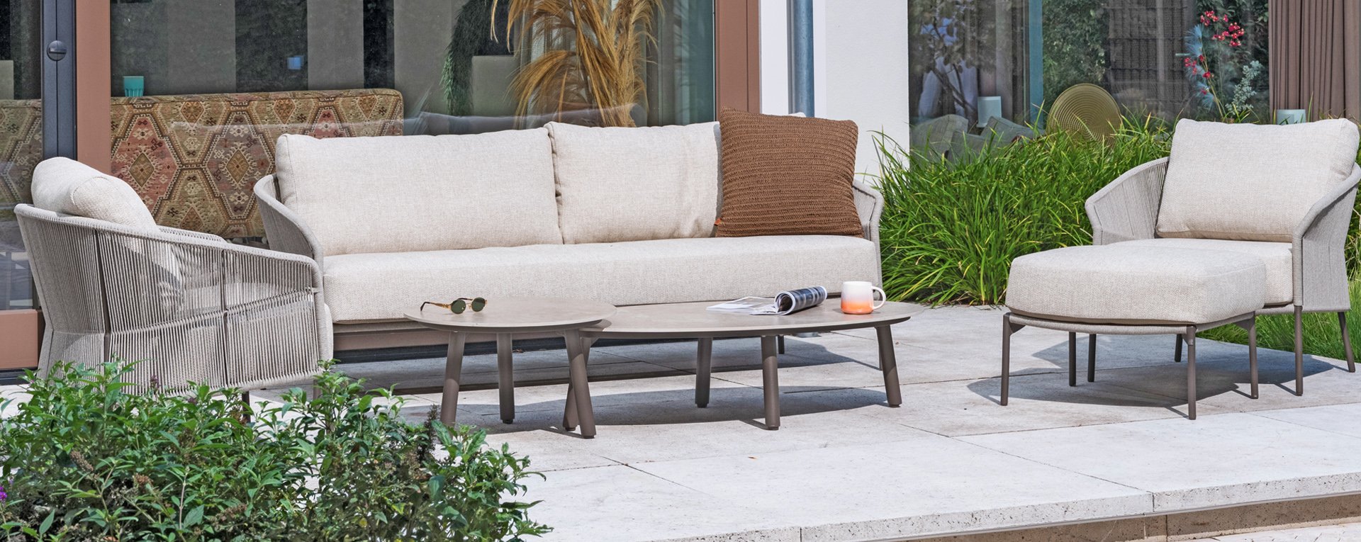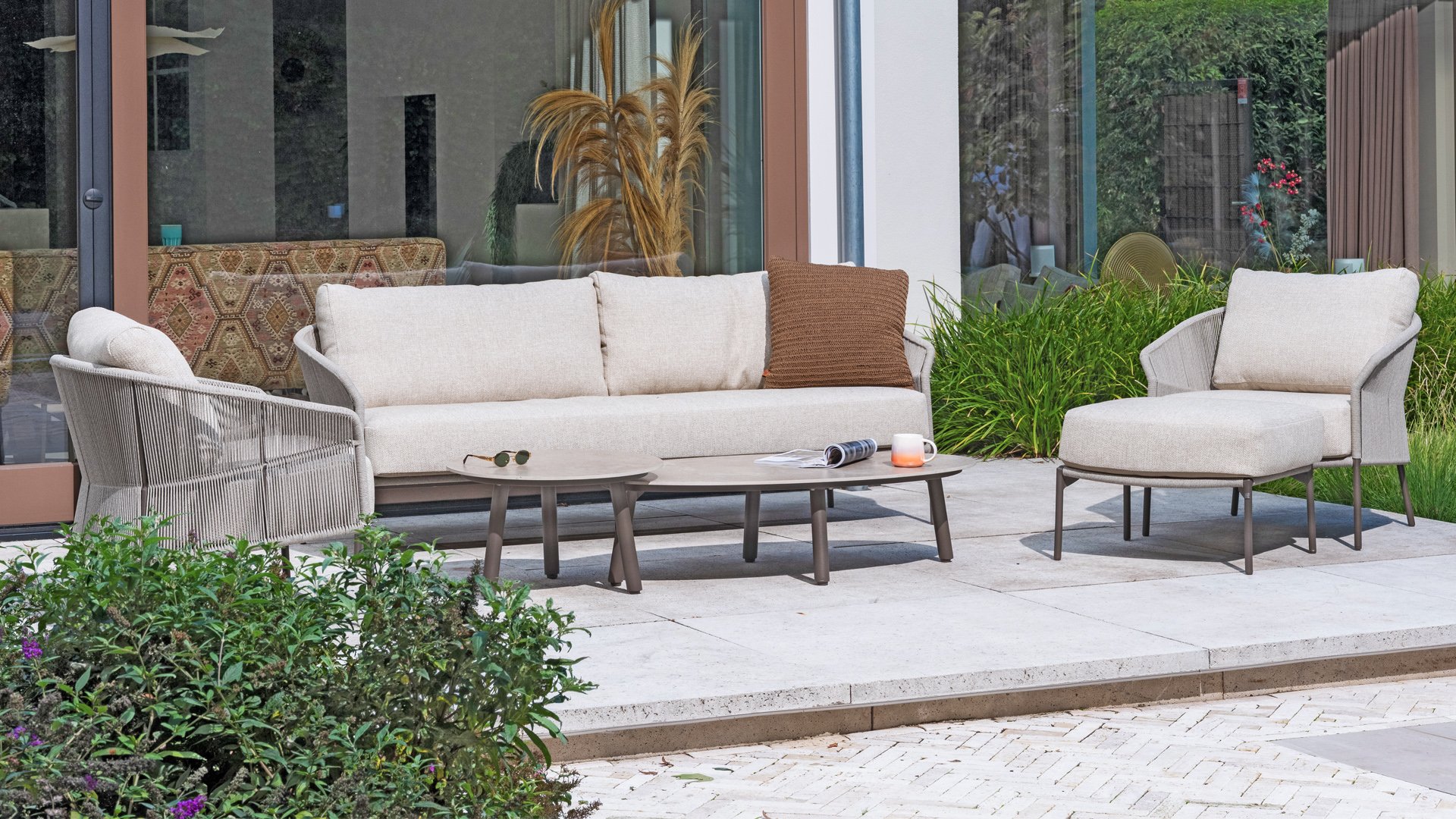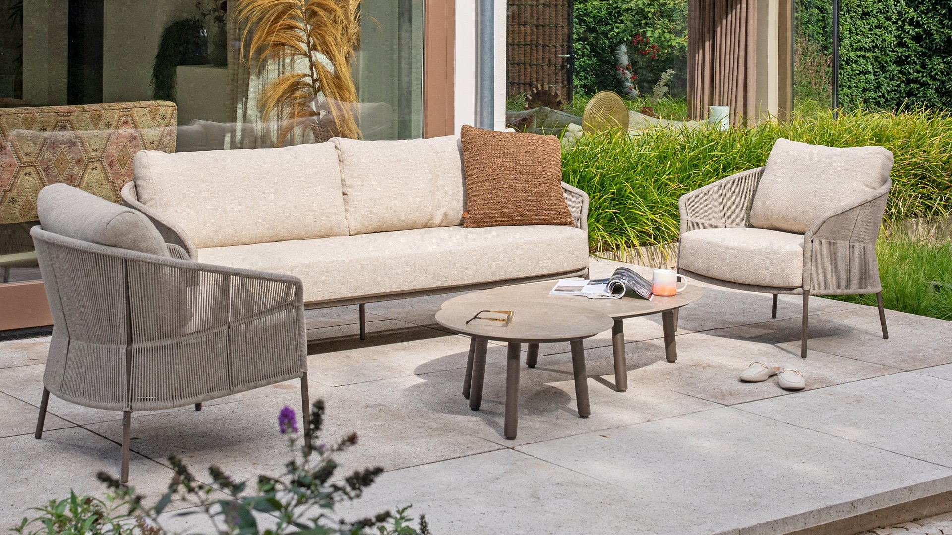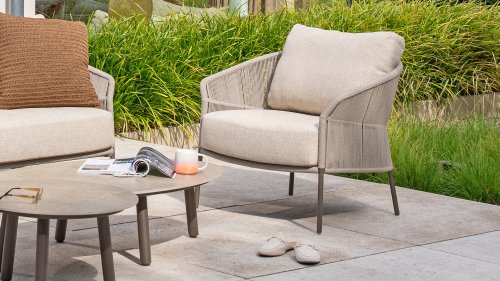 Verleihen Sie Ihrem Stil mit dem Florence Stil. Das wunderschöne Rope-design kombiniert mit luxuriösen Kissen sorgt für die perfekte Kombination aus Stil und Komfort. Genießen Sie ultimative Entspannung und entspannen Sie sich diesen Sommer. Erhältlich in zwei eleganten Farben: Taste Florence Terre Lounge – ein warmer, erdiger Farbton, der perfekt zu natürlichen Gartenelementen passt. Taste Florence Latte Lounge – eine helle, elegante Farbe für einen frischen, sommerlichen Look.