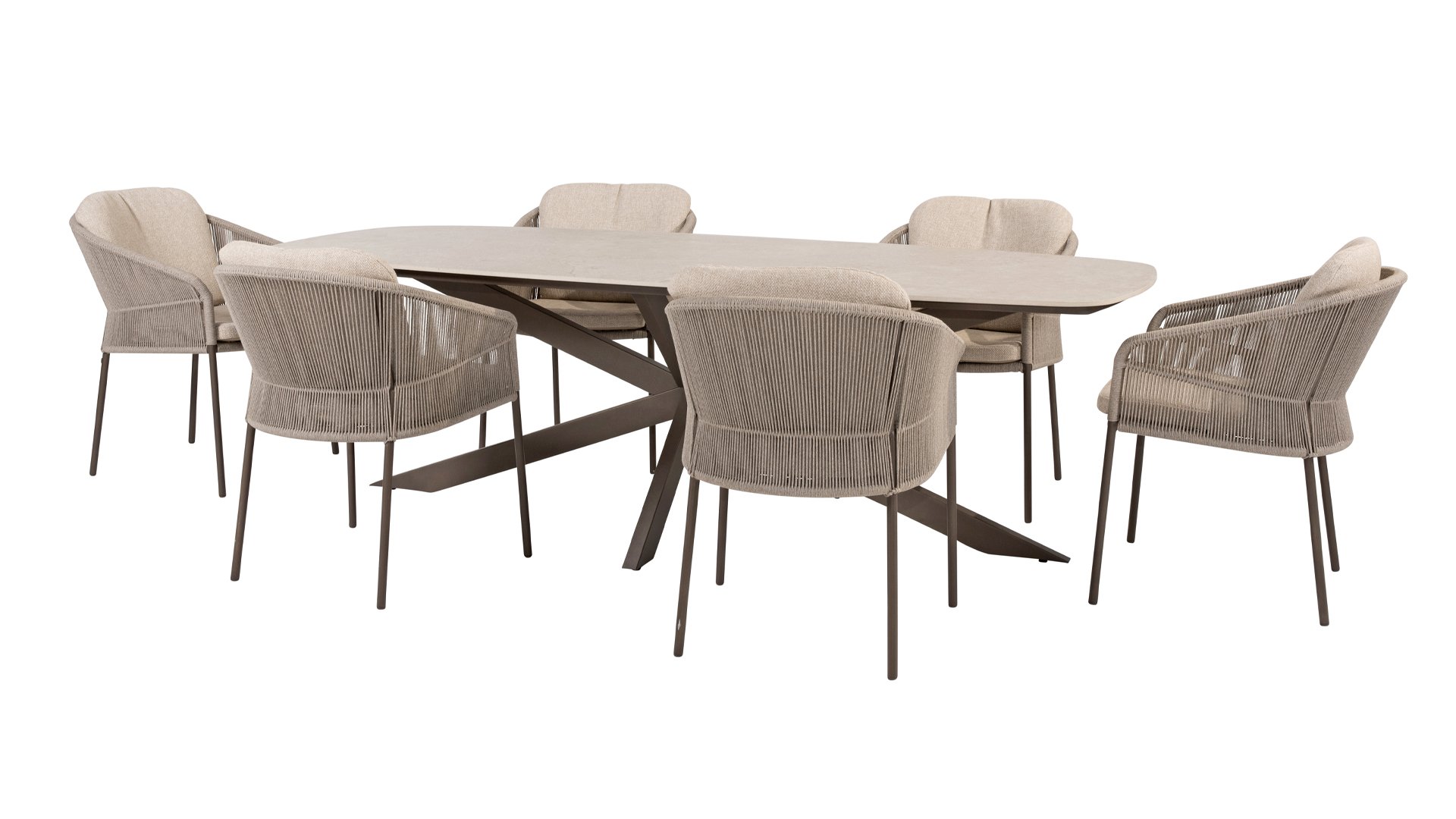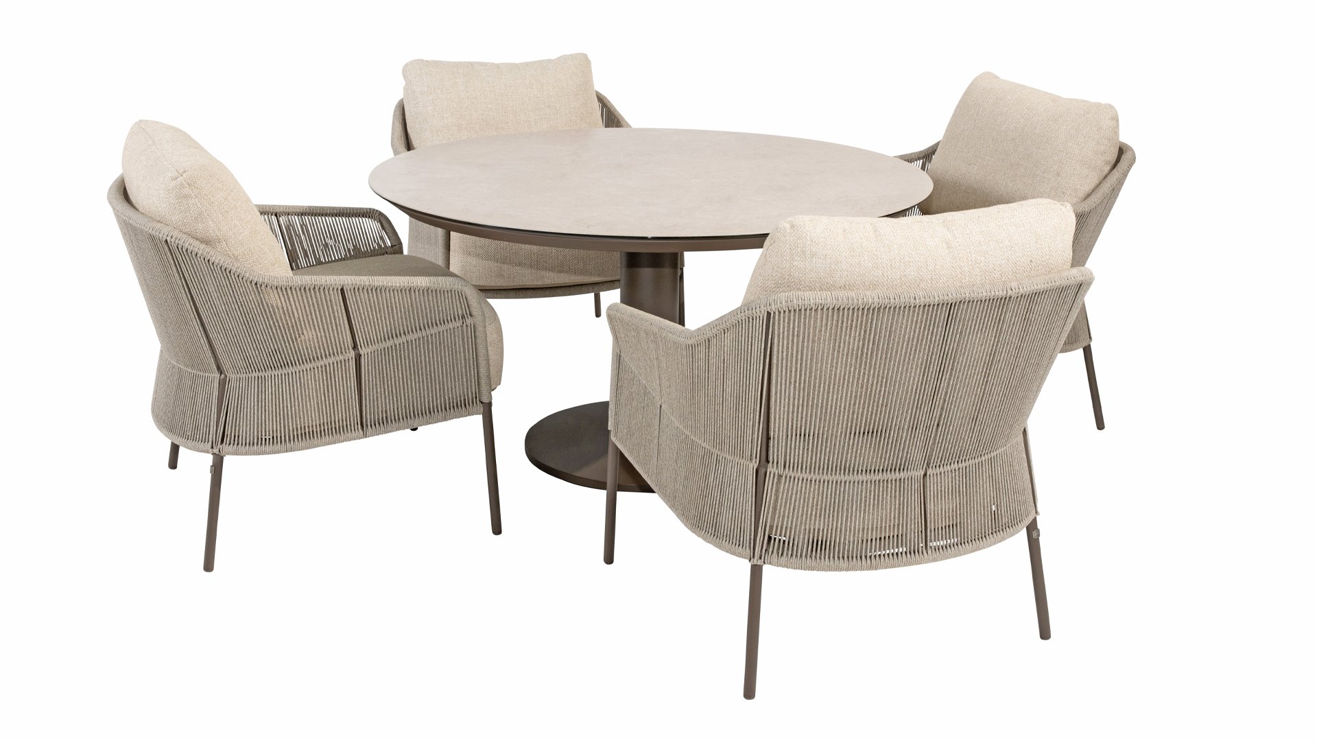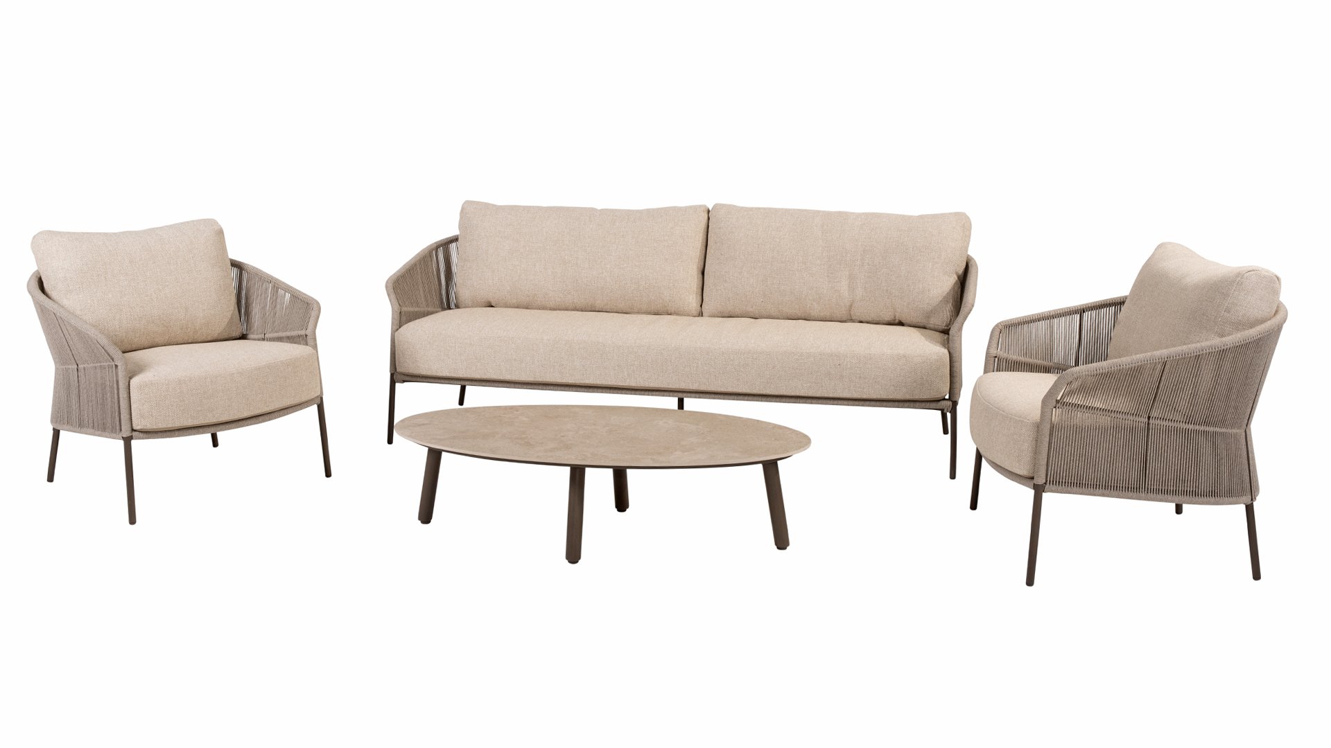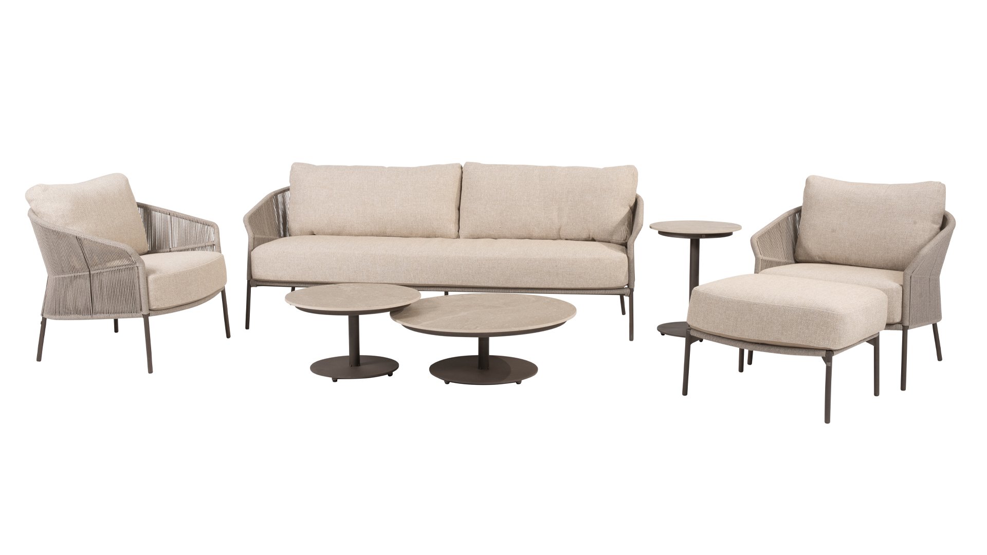 Verleihen Sie Ihrem Stil mit dem Florence Stil. Das wunderschöne Rope-design kombiniert mit luxuriösen Kissen sorgt für die perfekte Kombination aus Stil und Komfort. Genießen Sie ultimative Entspannung und entspannen Sie sich diesen Sommer. Erhältlich in zwei eleganten Farben: Taste Florence Terre Lounge – ein warmer, erdiger Farbton, der perfekt zu natürlichen Gartenelementen passt. Taste Florence Latte Lounge – eine helle, elegante Farbe für einen frischen, sommerlichen Look.