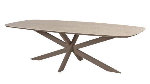 Der Nevada-Tisch ist ein wunderschöner Low-Dining-Tisch, der perfekt für das Leben im Freien geeignet ist. Mit seiner scheinbar ovalen (barrel) Keramikplatte zusammen mit einem latte oder terre farbenen Gestell strahlt er Wärme und Gemütlichkeit aus. Die Keramik eignet sich ideal für den Außenbereich: Sie ist langlebig, fleckenresistent und einfach zu reinigen. Das Gestell des Tisches ist ein modernes Kreuzbein, das nicht nur für Stabilität sorgt, sondern auch ein zeitgemäßes Aussehen verleiht. Dieses Design bietet ausreichend Platz für bequeme Stühle, sodass Sie sich bei informellen Mahlzeiten oder Treffen mit Freunden und Familie leicht entspannen können. Durch die niedrige Höhe des Nevada Low-Dining-Tisches entsteht eine informelle, entspannte Atmosphäre, die sich hervorragend für lange Sommerabende im Garten oder auf der Terrasse eignet. Mit seiner eleganten Form und natürlichen Farbe ist der Nevada-Tisch eine wunderbare Ergänzung zu jedem Außenbereich, ideal um gemeinsam das Leben im Freien zu genießen!