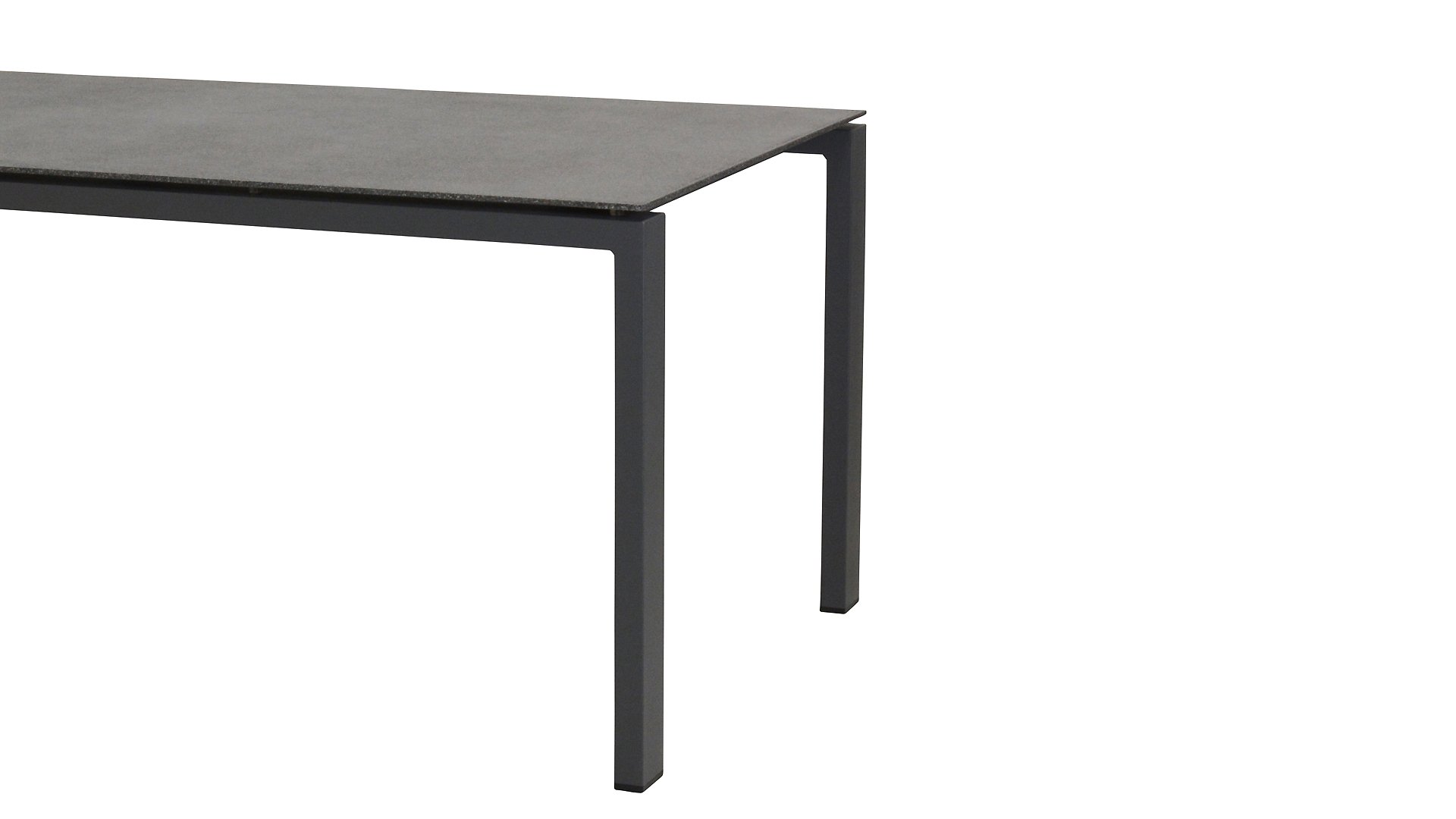 Der Sockel besteht aus pulverbeschichtetem Aluminium und die Oberseite aus Spraystone. Spraystone ist eine Kunststoffschicht, die auf Sicherheitsglas aufgetragen wird. Diese Kombination macht es zu einem starken Material, das gleichzeitig leicht ist. Spraystone hat das Aussehen von Naturstein, ist aber viel leichter. Die Spraystone-Variante ist in den Größen 160cm & 220cm erhältlich. Tische dieser Serie sind auch mit einer Keramikplatte erhältlich: Taste Lafite Keramik Anthrazit 220cm & Taste Lafite Keramik White 220cm.
