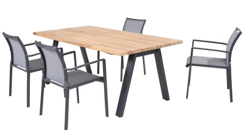 Der Taste by 4Seasons Outdoor Melbourne Stapelstuhl ist ein hochwertiger Stapelstuhl aus leichtem Aluminium. Der Stuhlsitz besteht aus Textilene, das ohne Kissen sehr bequem ist. Das Aluminium rostet nicht und das Textilene ist leicht zu reinigen. Der Esszimmerstuhl ist leicht und lässt sich daher bei Bedarf einfach stapeln und verstauen. Durch die Armlehnen aus Teakholz lässt sich dieser Esszimmerstuhl problemlos mit verschiedenen Tischen aus unserer Taste 4SO-Kollektion kombinieren.