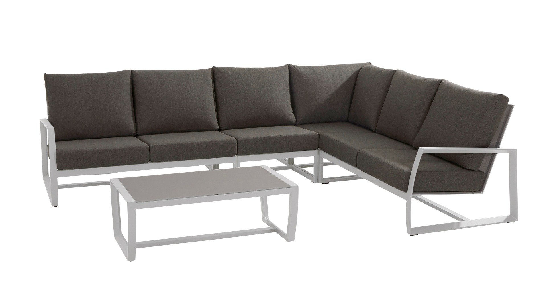 Diese Taste by 4Seasons Sitzgruppe Mauritius überzeugt durch das moderne und dennoch zeitlose Design. Die bequemen Polster der Taste Mauritius sorgen für einen unglaublichen hohen Sitzkomfort. Auf der Terrasse, im Wintergarten oder im Wohnbereich machen die Taste by 4Seasons Living GartenMöbel immer einen guten Eindruck. Die Taste Mauritius  Loungemöbel basieren auf einem hochwertigen Aluminium Gestell. Dieses ist in Weiß pulverbeschichtet um vor Witterungseinflüssen geschützt zu sein.Die Kissen sind Semi All-Weather Solefin Stoff.