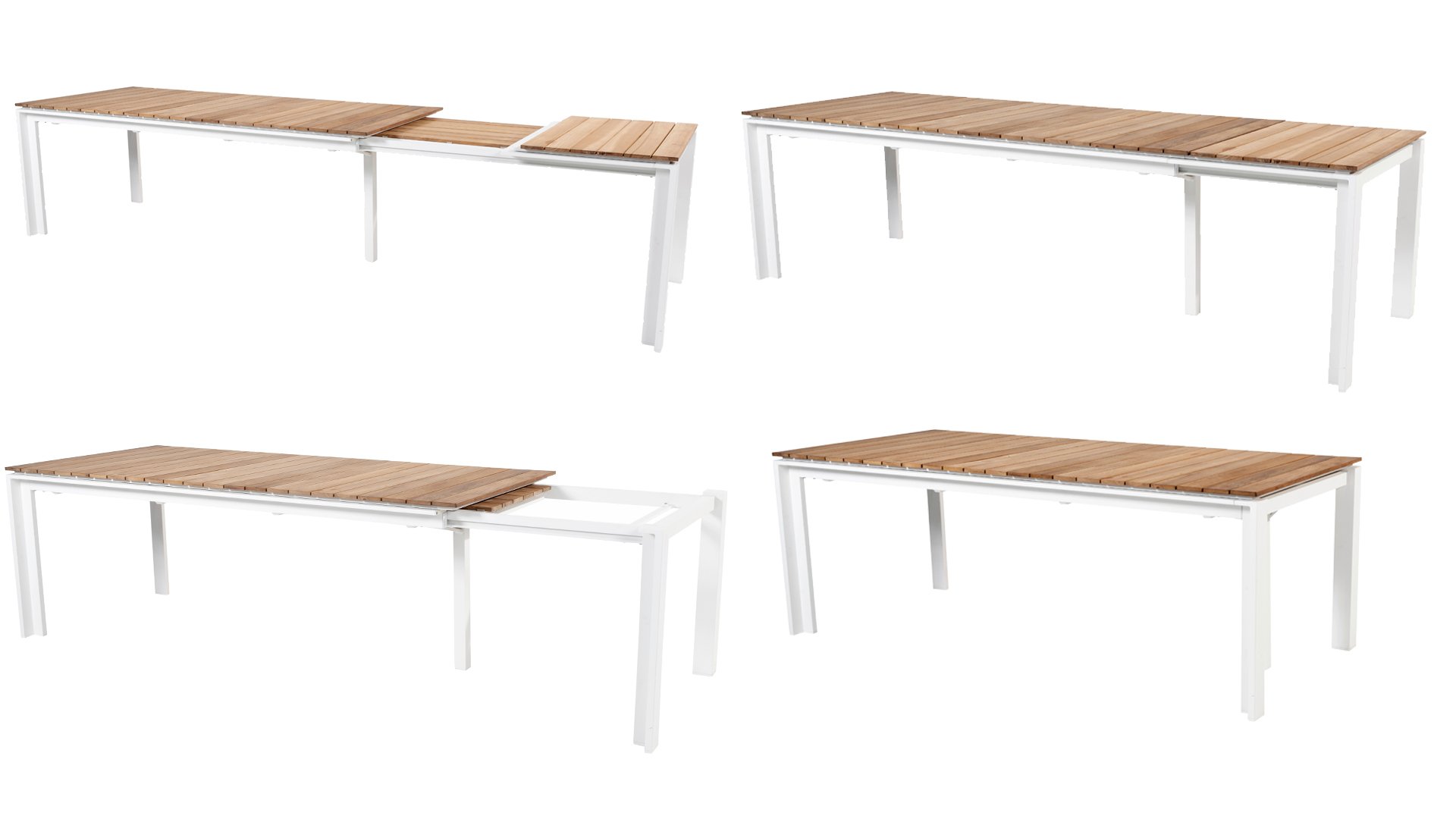 1 x Taste Optimum Aussiehtisch 220/280/340x95xH75cm Teak-Alu White