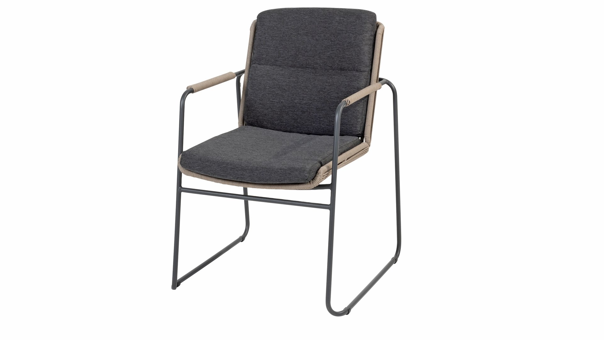 Hübsches Parma. Diese Speisestühle wurden in Latte-Farbe mit anthrazitfarbenem Rahmen und taupefarbenem Seil entworfen. Hier kannst du sie sehen: Geschmack von 4 Seasons Outdoor Parma Latte & Geschmack von 4 Seasons Outdoor Parma Anthrazit. Die Kissen in den stapelbaren Parma Esszimmerstühlen sind von einem gewebten Seil umgeben, was ein behagliches Gefühl vermittelt. Hübsch, Perfekt, Parma. Der stapelbare Parma-Diningstuhl von Taste 4SO bietet eine harmonische Kombination aus Komfort und modernem Design für Ihren Außenbereich. Dieser Stuhl wurde entworfen, um nicht nur bequem zu sitzen, sondern auch Ihren Außenbereich zu verschönern. Das Sitz- und Rückenkissen werden wunderschön vom Gestell mit Seil umschlossen, ein subtiles Designdetail dieses schönen Stuhls.