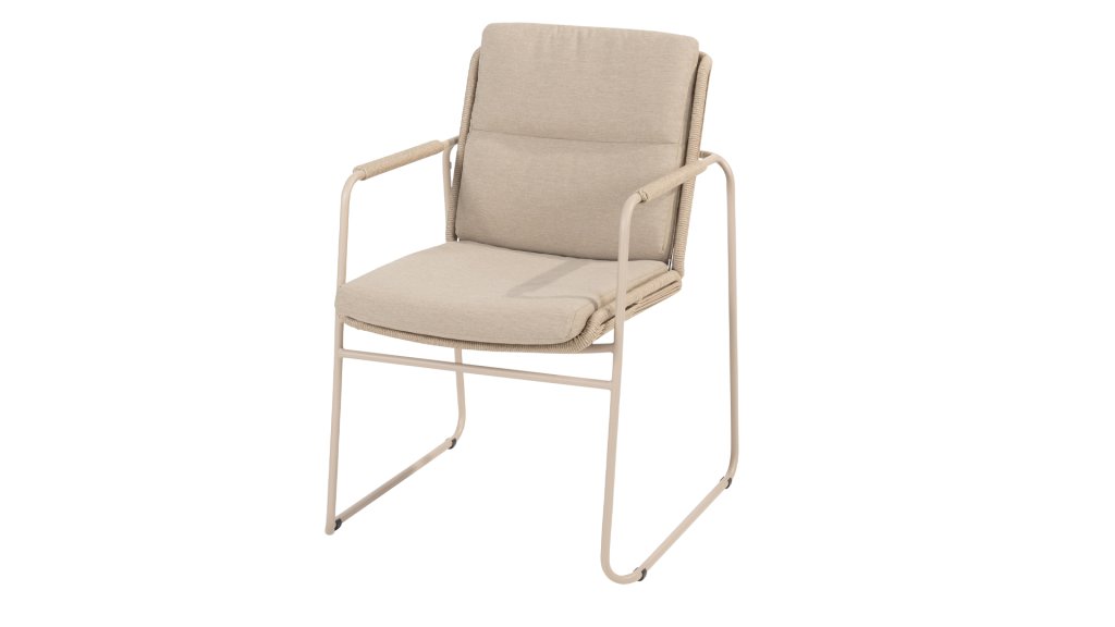 Pretty Parma. Diese Dining-Stühle wurden in der Farbe Latte und mit anthrazitfarbenem Rahmen mit taupefarbenem Seil entworfen, sehen Sie sie hier: Taste by 4 Seasons Outdoor Parma Latte & Taste by 4 Seasons Outdoor Parma Anthrazit. Die Kissen in den stapelbaren Parma Esszimmerstühlen sind von Seil umgeben, was ein gemütliches Gefühl vermittelt. Hübsch, Perfekt, Parma. Der stapelbare Parma-Dining-Stuhl von Taste 4SO bietet eine harmonische Kombination aus Komfort und modernem Design für Ihren Außenbereich. Dieser Stuhl wurde entwickelt, um nicht nur bequem zu sitzen, sondern auch Ihren Außenbereich zu verschönern. Das Sitz- und Rückenkissen wird wunderschön vom Seilrahmen umschlossen, ein subtiler Designdetail dieses schönen Stuhls.