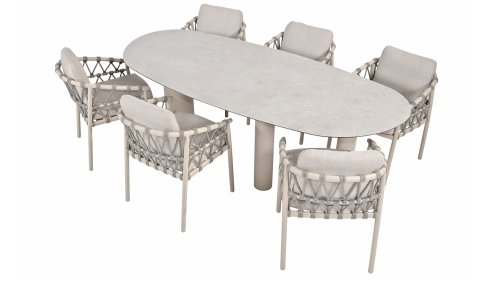 Ein Hauch von "La Dolce Vita“ für Ihren Garten. Die Taste Piacenza besticht durch ihre wunderschöne, sanfte Farbe. Das pulverbeschichtete Aluminiumgestell ist in Latte gehalten. Dieser warme, sandige Farbton wirkt viel weicher und natürlicher als herkömmliches Weiß oder Anthrazit. Das Gestell ist mit edlem, grauem Seilgarn bezogen. Dieses luftig gewebte Garn verleiht dem Stuhl ein großzügiges Erscheinungsbild und einen verspielten Charakter. Die bequeme Sitzfläche wird durch hellgraue Olefin-Kissen ergänzt. Dieser Stoff fühlt sich weich an wie ein Indoor-Stoff und ist gleichzeitig wetterfest, windbeständig und UV-beständig.
