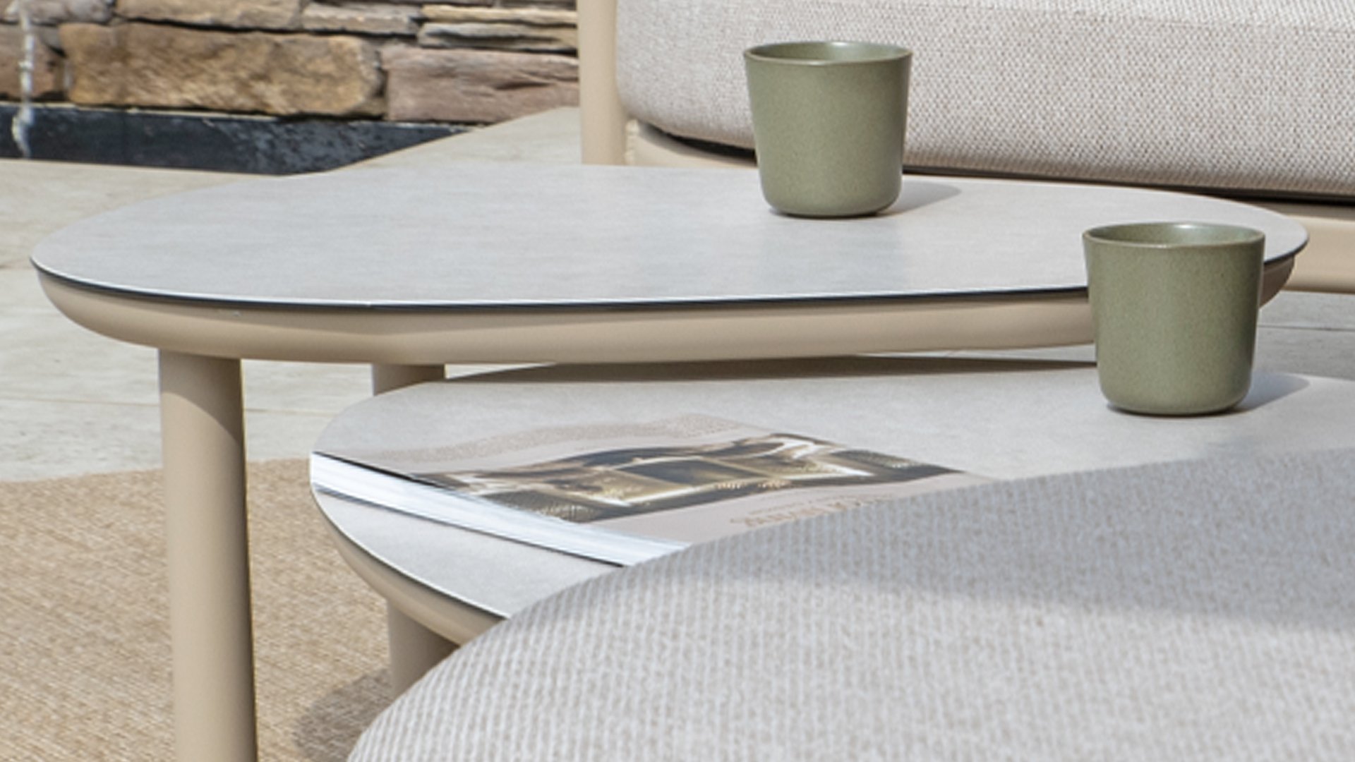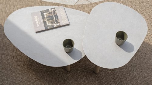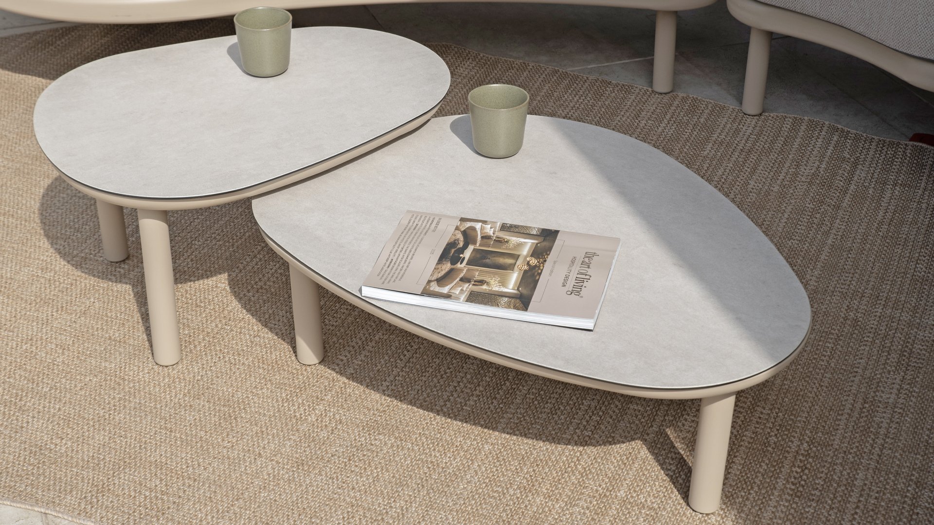 Verleihen Sie Ihrem Wohnraum einen Hauch von Eleganz und Raffinesse mit der Couchtischserie Monroe von Taste by 4 Seasons Outdoor. Dieses wunderschöne Set besteht aus zwei organisch geformten Tischen mit kieselsteinförmigen Tischplatten – verspielt und doch perfekt ausbalanciert. Dank seines unverwechselbaren Designs wird der Monroe zum stilvollen Blickfang in jedem Innen- und Außenbereich. Die Tischplatten bestehen aus bedruckter Keramik auf Glas und sorgen für eine luxuriöse Optik und eine langlebige, pflegeleichte Oberfläche. Der pulverbeschichtete Aluminiumfuß sorgt für eine stabile Basis und einen modernen, luftigen Look. Das Set ist in zwei Größen erhältlich – Ø65xH32cm und Ø80xH27cm – und lässt sich perfekt kombinieren oder einzeln zu einem dynamischen Ensemble kombinieren. Erhältlich in drei stilvollen Farben – Terre, Latte und Anthrazit – lässt sich der Monroe mühelos in Ihr Interieur oder Ihren Garten integrieren.