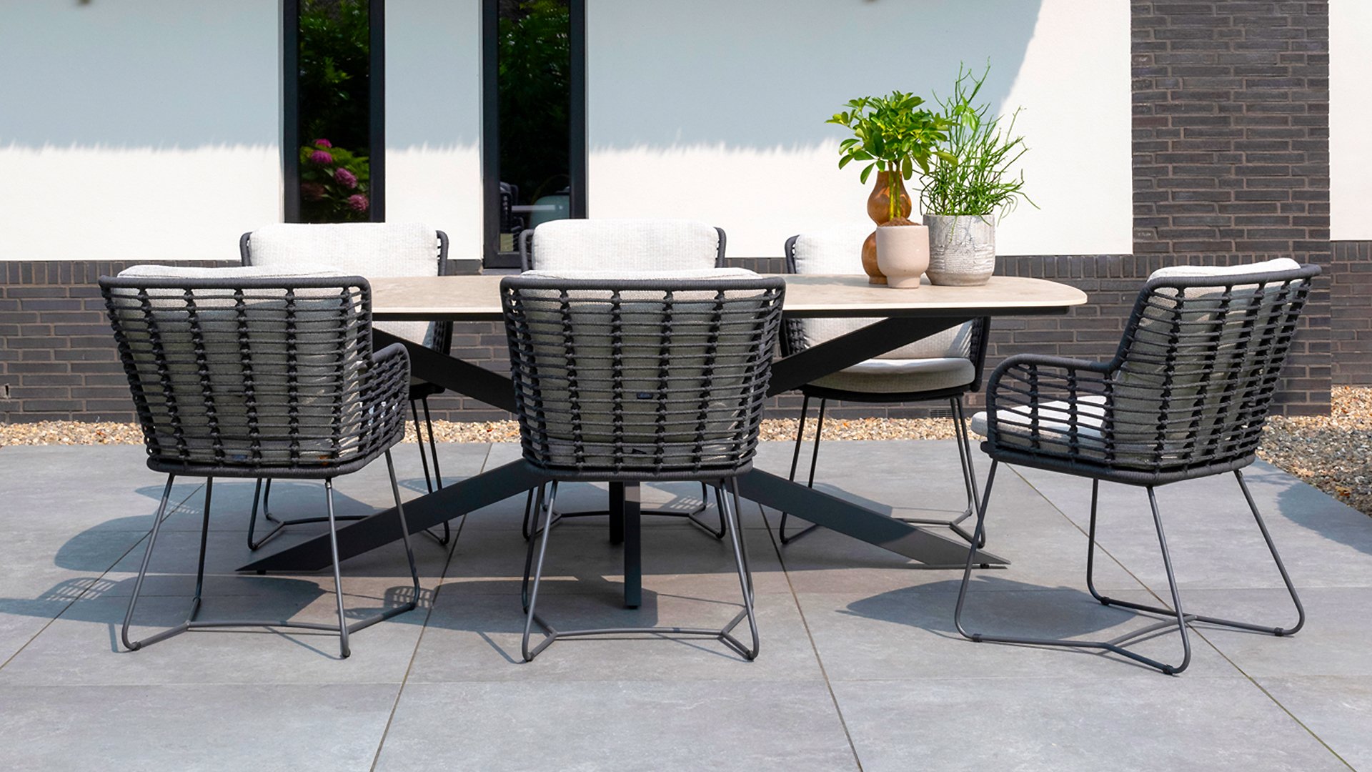 Aluminium ist sehr wartungsfreundlich und leicht. Diese praktischen Möbel sind leicht zu reinigen. Unser Aluminium mit einer festen Pulverbeschichtung ist witterungsbeständig und UV-beständig. Aluminium ist nicht rostanfällig, zeitlos und stilvoll