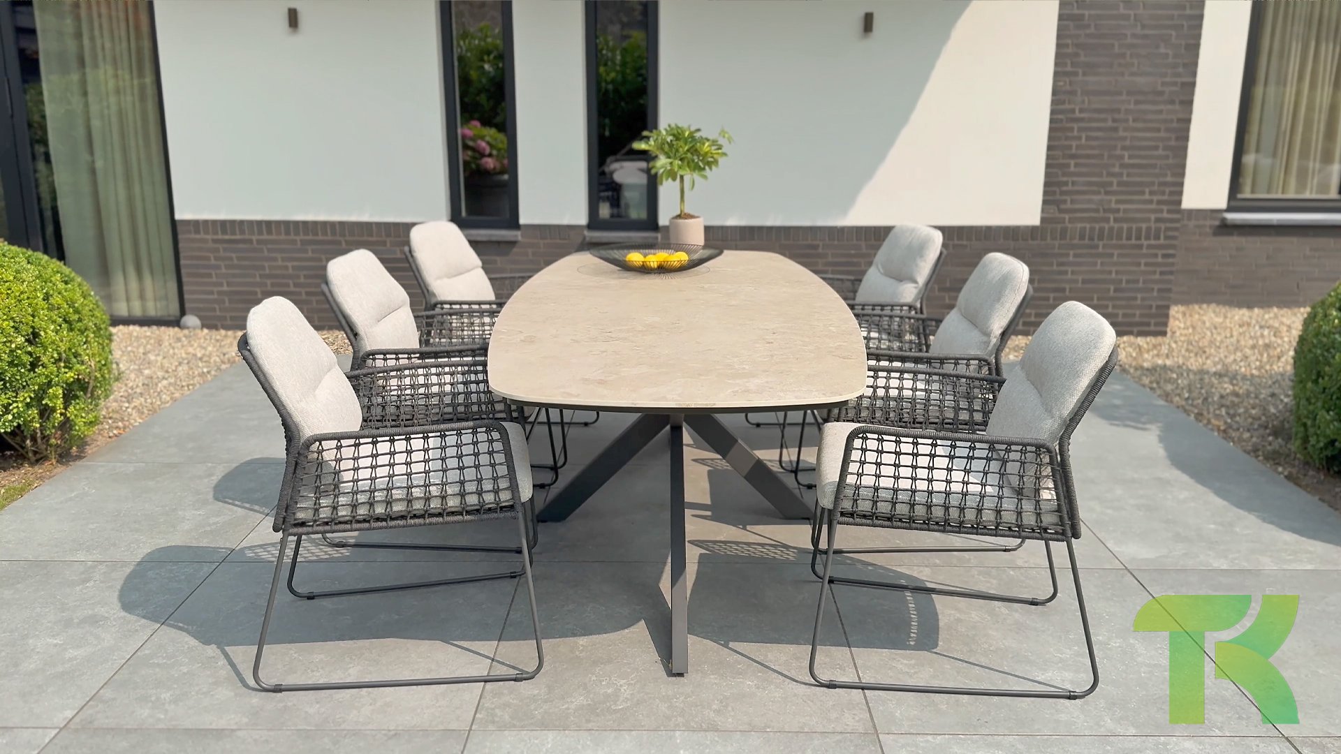Mit seinen großzügigen Abmessungen bietet dieser Tisch ausreichend Platz für ein gemütliches Essen mit Freunden oder ein intimes Abendessen mit der Familie. Die Kombination aus raffinierter Keramik und dem starken, stilvollen Bein macht diesen Tisch nicht nur funktional, sondern setzt auch ein atemberaubendes Statement in Ihrem Garten.