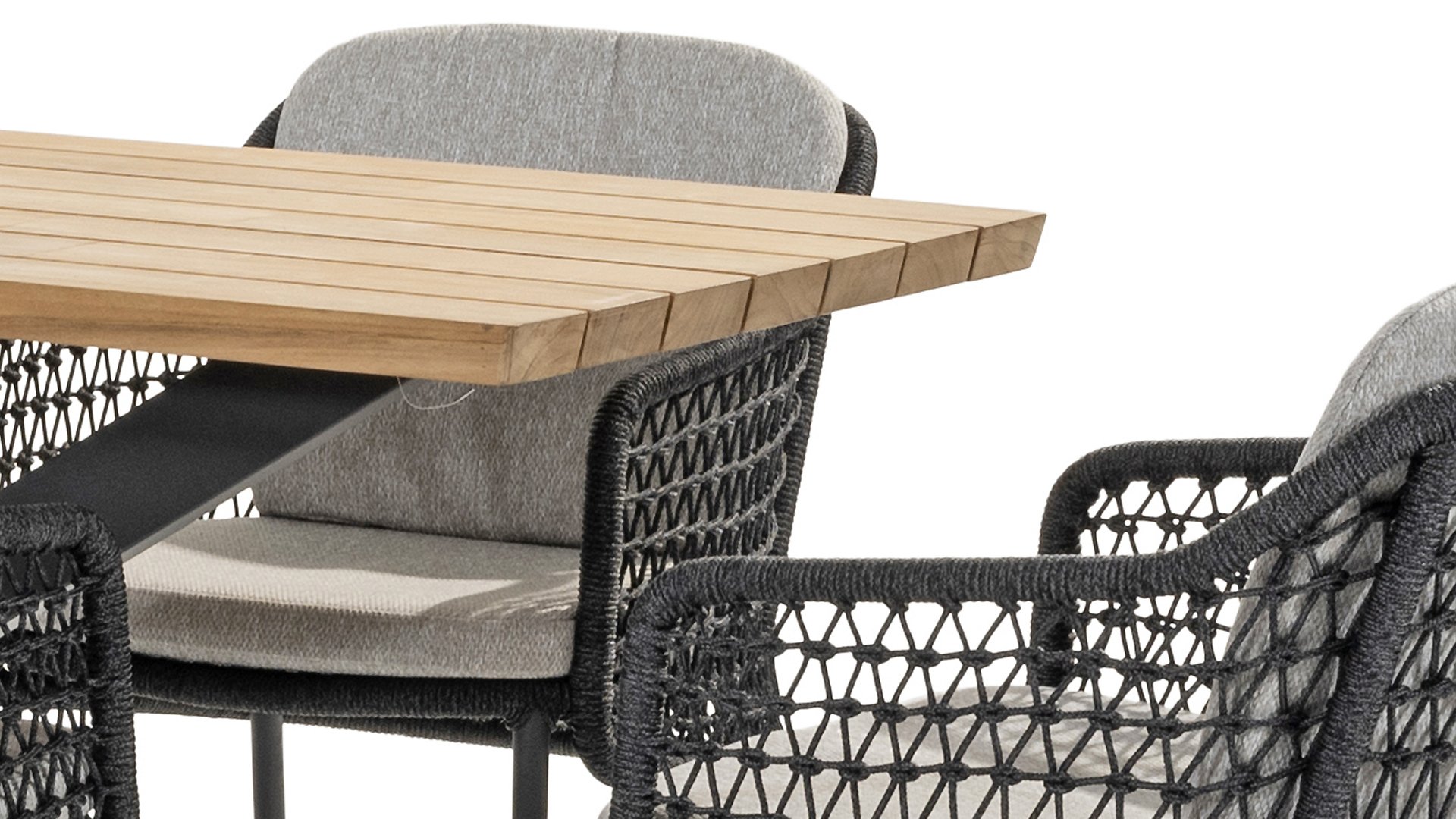 Gartenmöbel aus Teakholz bieten einen atemberaubenden Blick.Teakholz eignet sich besonders gut für den Einsatz im Außenbereich. Es ist resistent gegen Schädlinge und Pilze und widerstandsfähig gegen Sonne, Regen und Schnee. Mit der Zeit entwickelt das Teakholz eine silbergraue Patina. Gartenmöbel aus Teakholz bieten einen atemberaubenden Blick. Darüber hinaus ist es starkes Material und erfordert nur wenig Wartung. Wer die ursprüngliche Farbe des Teakholzes bevorzugt, kann durch regelmäßiges benutzen unser Pflegemittel ganz einfach das Vergrauen des Holzes verhindern.Darüber hinaus können Sie Teak mit grüner Seife reinigen. Durch Temperaturunterschiede und durch den Wechsel von Feuchtigkeit und Trockenheit können kleine Haarrisse entstehen. Es ist üblich, dass Man in dies Unvollkommenheiten findet, diese Unregelmäßigkeiten sind kennzeichnend für dieses Produkt. Diese Unregelmäßigkeiten können nie einen Anlass zu Reklamation, Garantie oder Claim formen. Es betrifft eine Unterschrift von Originalität!  Wir gewähren Garantie auf alle Produktions- und Konstruktionsfehler. Die Wirkung von Teakholz ist nicht enthalten. Wenn Sie sich für Teakholz entscheiden, erwarten wir, dass Sie diese Eigenschaften zu schätzen wissen. Eventuell auftretende Haarrisse, Äste im Teakholz und raue Oberflächen im Laufe der Zeit fallen nicht unter unsere Garantie. Diese Eigenschaften verleihen dem Teakholz seinen eigenen Charakter und sind Teil der Optik. Seien Sie vorsichtig mit einem Blumentopf oder einer Vase auf Ihrem Gartentisch aus Teakholz, da dies zu hartnäckigen Kreisen oder Farbunterschieden führen kann.
