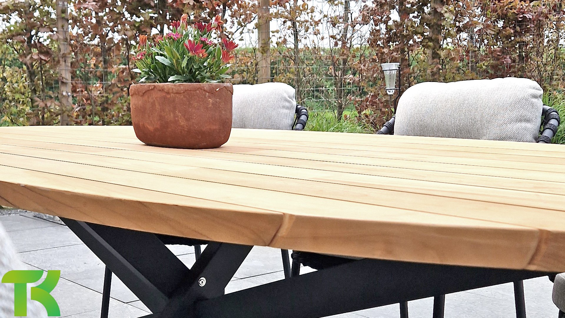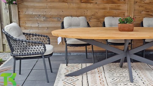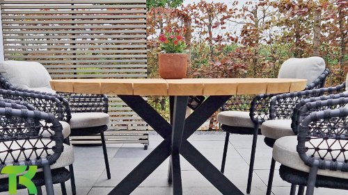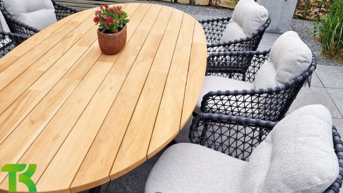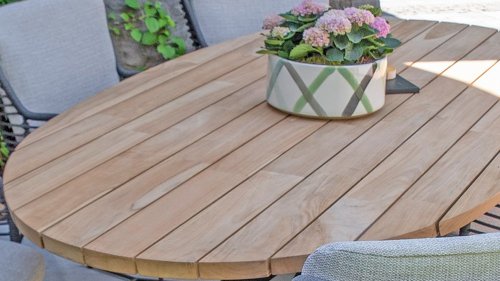 Gartenmöbel aus Teakholz bieten einen atemberaubenden Blick.Teakholz eignet sich besonders gut für den Einsatz im Außenbereich. Es ist resistent gegen Schädlinge und Pilze und widerstandsfähig gegen Sonne, Regen und Schnee. Mit der Zeit entwickelt das Teakholz eine silbergraue Patina. Gartenmöbel aus Teakholz bieten einen atemberaubenden Blick. Darüber hinaus ist es starkes Material und erfordert nur wenig Wartung. Wer die ursprüngliche Farbe des Teakholzes bevorzugt, kann durch regelmäßiges benutzen unser Pflegemittel ganz einfach das Vergrauen des Holzes verhindern.Darüber hinaus können Sie Teak mit grüner Seife reinigen. Durch Temperaturunterschiede und durch den Wechsel von Feuchtigkeit und Trockenheit können kleine Haarrisse entstehen. Es ist üblich, dass Man in dies Unvollkommenheiten findet, diese Unregelmäßigkeiten sind kennzeichnend für dieses Produkt. Diese Unregelmäßigkeiten können nie einen Anlass zu Reklamation, Garantie oder Claim formen. Es betrifft eine Unterschrift von Originalität!  Wir gewähren Garantie auf alle Produktions- und Konstruktionsfehler. Die Wirkung von Teakholz ist nicht enthalten. Wenn Sie sich für Teakholz entscheiden, erwarten wir, dass Sie diese Eigenschaften zu schätzen wissen. Eventuell auftretende Haarrisse, Äste im Teakholz und raue Oberflächen im Laufe der Zeit fallen nicht unter unsere Garantie. Diese Eigenschaften verleihen dem Teakholz seinen eigenen Charakter und sind Teil der Optik. Seien Sie vorsichtig mit einem Blumentopf oder einer Vase auf Ihrem Gartentisch aus Teakholz, da dies zu hartnäckigen Kreisen oder Farbunterschieden führen kann.