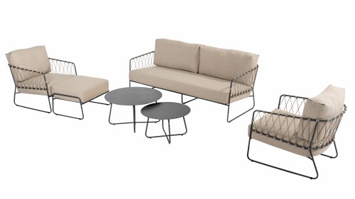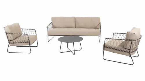 Die Prego-Lounge von Taste by 4Seasons besteht aus taupefarbenem Seil und verfügt über einen stilvollen anthrazitfarbenen Rahmen, der nicht nur langlebig ist, sondern Ihrem Außenbereich auch eine moderne Note verleiht. Mit den mitgelieferten Kissen können Sie stundenlang in Luxus und Komfort entspannen. Mit der Taste 4SO Prego Lounge genießen Sie die perfekte Kombination aus Ästhetik und Komfort. Verwandeln Sie Ihren Außenbereich mit dieser modernen Lounge in eine Oase der Entspannung.