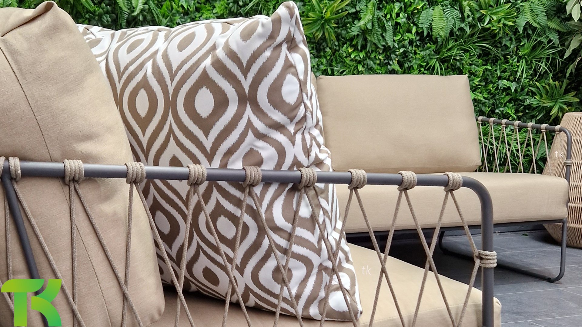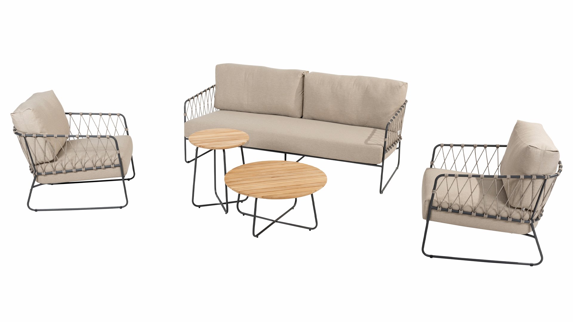 Die Prego-Lounge von Taste by 4Seasons besteht aus taupefarbenem Seil und verfügt über einen stilvollen anthrazitfarbenen Rahmen, der nicht nur langlebig ist, sondern Ihrem Außenbereich auch eine moderne Note verleiht. Mit den mitgelieferten Kissen können Sie stundenlang in Luxus und Komfort entspannen. Mit der Taste 4SO Prego Lounge genießen Sie die perfekte Kombination aus Ästhetik und Komfort. Verwandeln Sie Ihren Außenbereich mit dieser modernen Lounge in eine Oase der Entspannung.