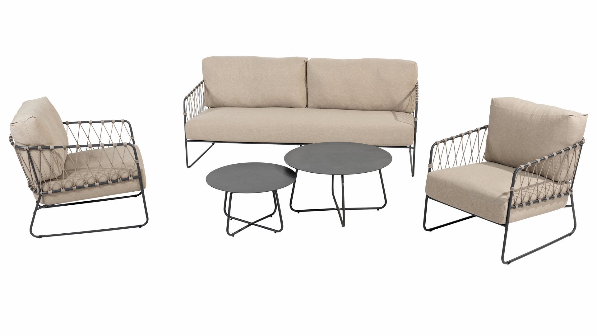 Die Prego-Lounge von Taste by 4Seasons besteht aus taupefarbenem Seil und verfügt über einen stilvollen anthrazitfarbenen Rahmen, der nicht nur langlebig ist, sondern Ihrem Außenbereich auch eine moderne Note verleiht. Mit den mitgelieferten Kissen können Sie stundenlang in Luxus und Komfort entspannen. Mit der Taste 4SO Prego Lounge genießen Sie die perfekte Kombination aus Ästhetik und Komfort. Verwandeln Sie Ihren Außenbereich mit dieser modernen Lounge in eine Oase der Entspannung.