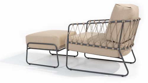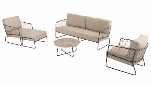 Die Prego-Lounge von Taste by 4Seasons besteht aus taupefarbenem Seil und verfügt über einen stilvollen anthrazitfarbenen Rahmen, der nicht nur langlebig ist, sondern Ihrem Außenbereich auch eine moderne Note verleiht. Mit den mitgelieferten Kissen können Sie stundenlang in Luxus und Komfort entspannen. Mit der Taste 4SO Prego Lounge genießen Sie die perfekte Kombination aus Ästhetik und Komfort. Verwandeln Sie Ihren Außenbereich mit dieser modernen Lounge in eine Oase der Entspannung.