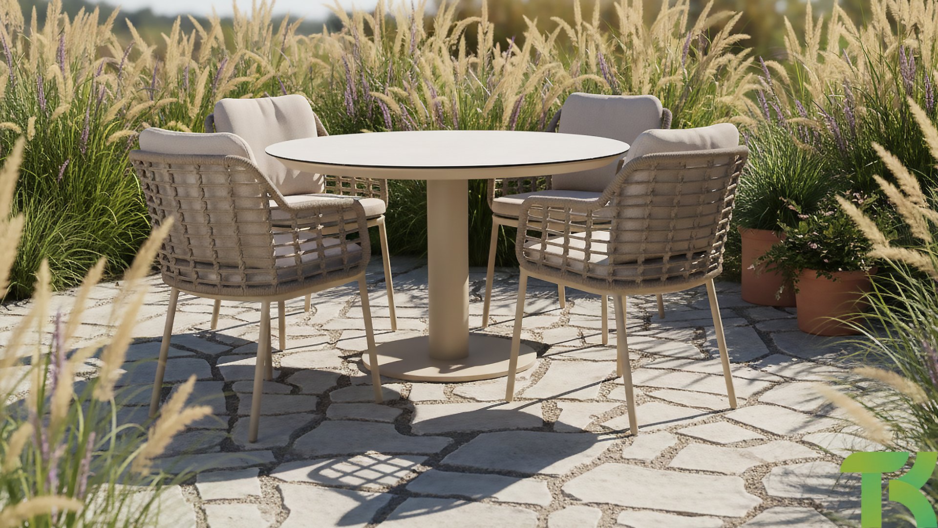- Modern & Organisch: Die runden Formen und das Rope-Geflecht verleihen Ihrer Terrasse sofort ein luxuriöses Upgrade.