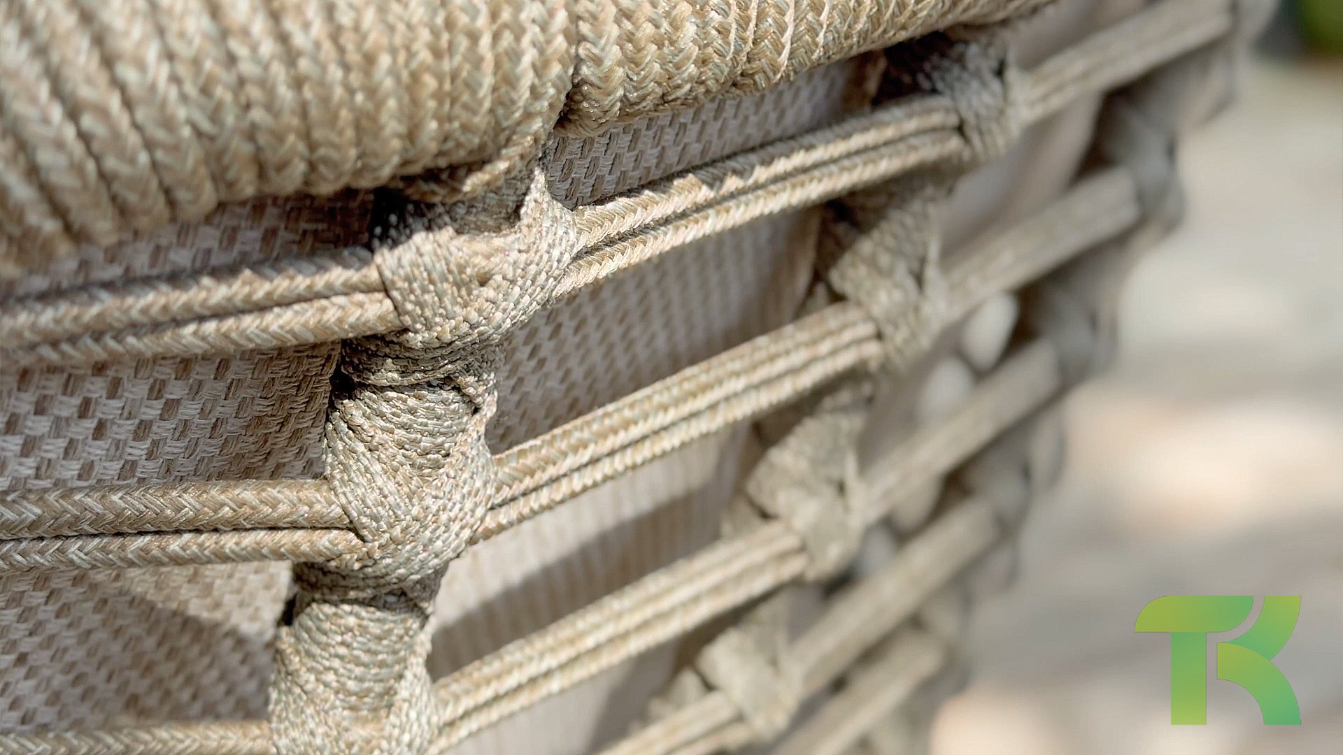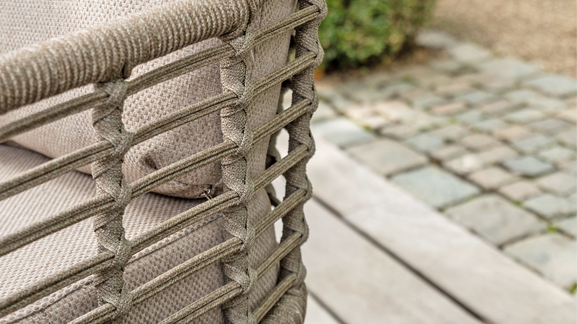Dieses wunderschöne Material eignet sich perfekt für den Außenbereich, denn Taste Rope ist nicht nur eine normale Spitze, an der Sie Ihre Schuhe binden können. Taste verwendet ein sehr hochwertiges Faser aus 100% SDP (Slution Dyed Polypropylen). Dieses Material ist extrem stark und hat einen sehr geringen Stretchanteil. Polypropylen ist auf Ölbasis, so dass Schmutz und Verunreinigungen, genau wie unsere Kissen, kaum eindringen können. Taste bietet exklusive Designs mit handgeflochtenen Geflechtmustern und -techniken.