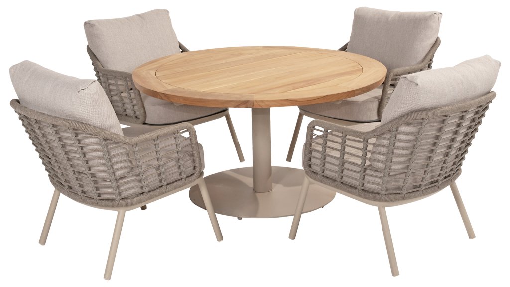 Was ist ein Low Dining Tisch? Auf den ersten Blick ein normaler Esstisch, aber wie der Name schon sagt, etwas niedriger. Durch die niedrigere Sitzhöhe sitzen Sie etwas entspannter, eine ideale Umgebung, um stundenlang gesellig zu tafeln. Ein Low Dining Esstisch bietet das Beste aus beiden Welten: Platz für ein ausgedehntes Barbecue und eine entspannte Sitzmöglichkeit für das Loungegefühl. Ein Taste 4SO Saba Low Dining Tisch kann aufgrund seiner spezifischen Höhe nur mit Low Dining Stühlen kombiniert werden. Denken Sie dabei an die Latte Low-Dining Stühle von 4 Seasons Outdoor. Mit diesen Modellen ist das Verhältnis perfekt. Erhältlich in den Größen Ø130cm, Ø160cm und den Farben Antraciet und Latte: