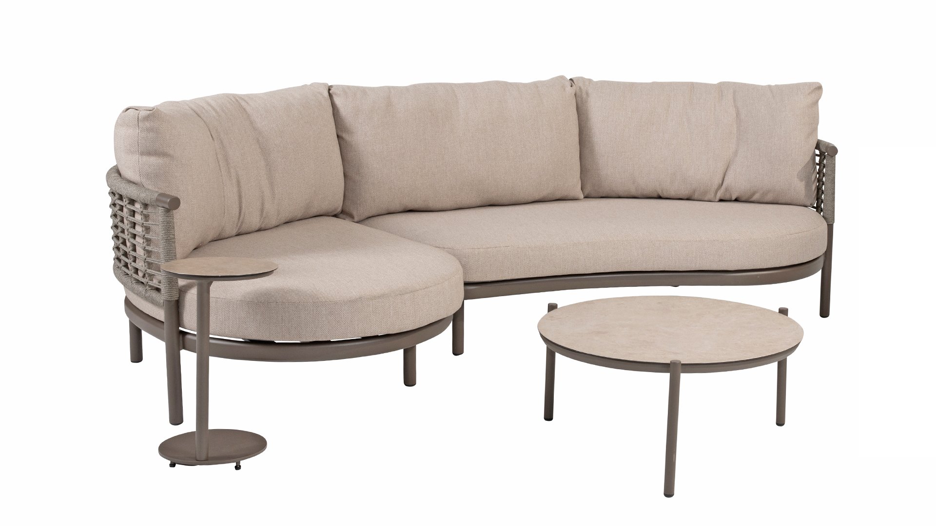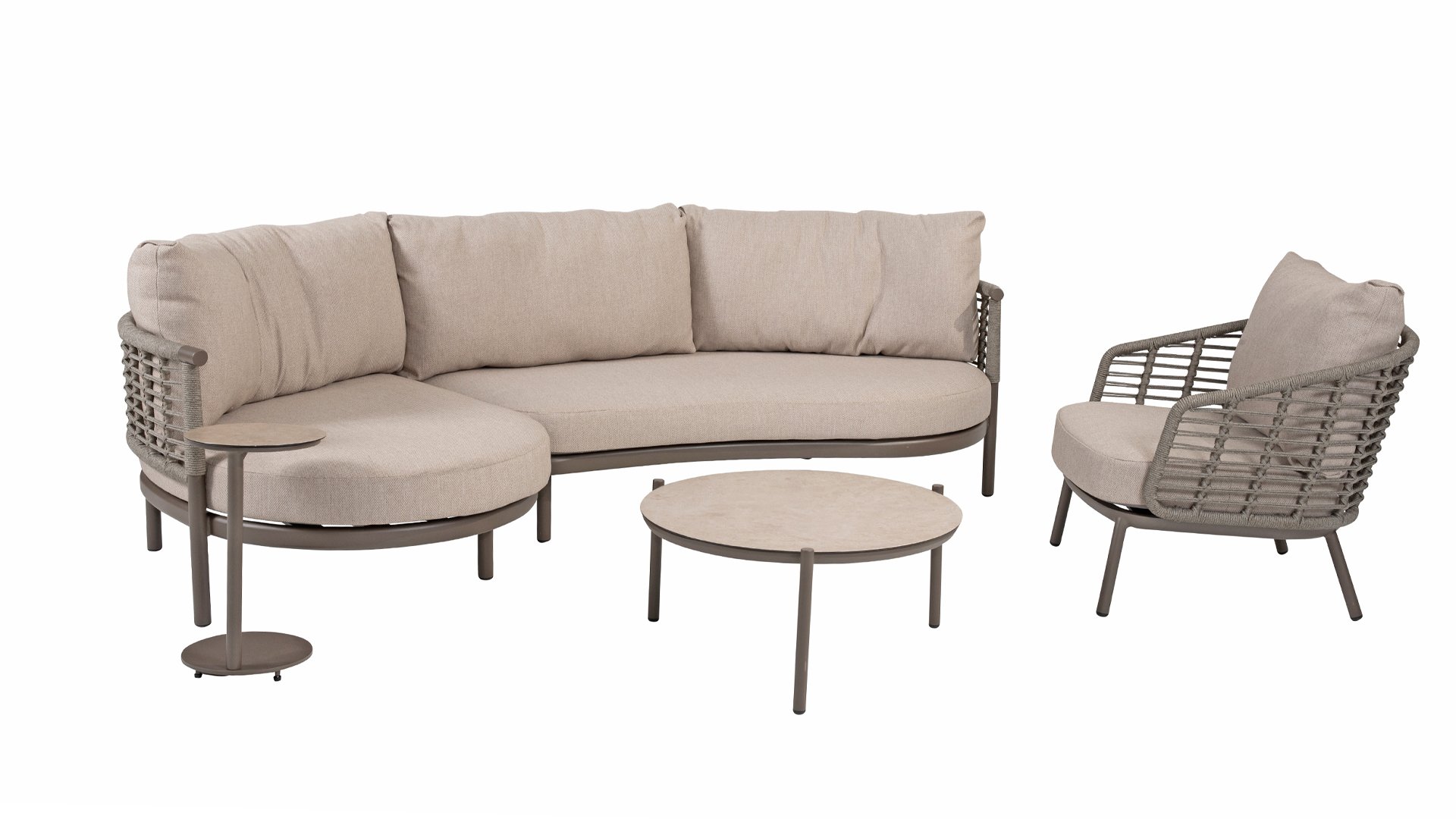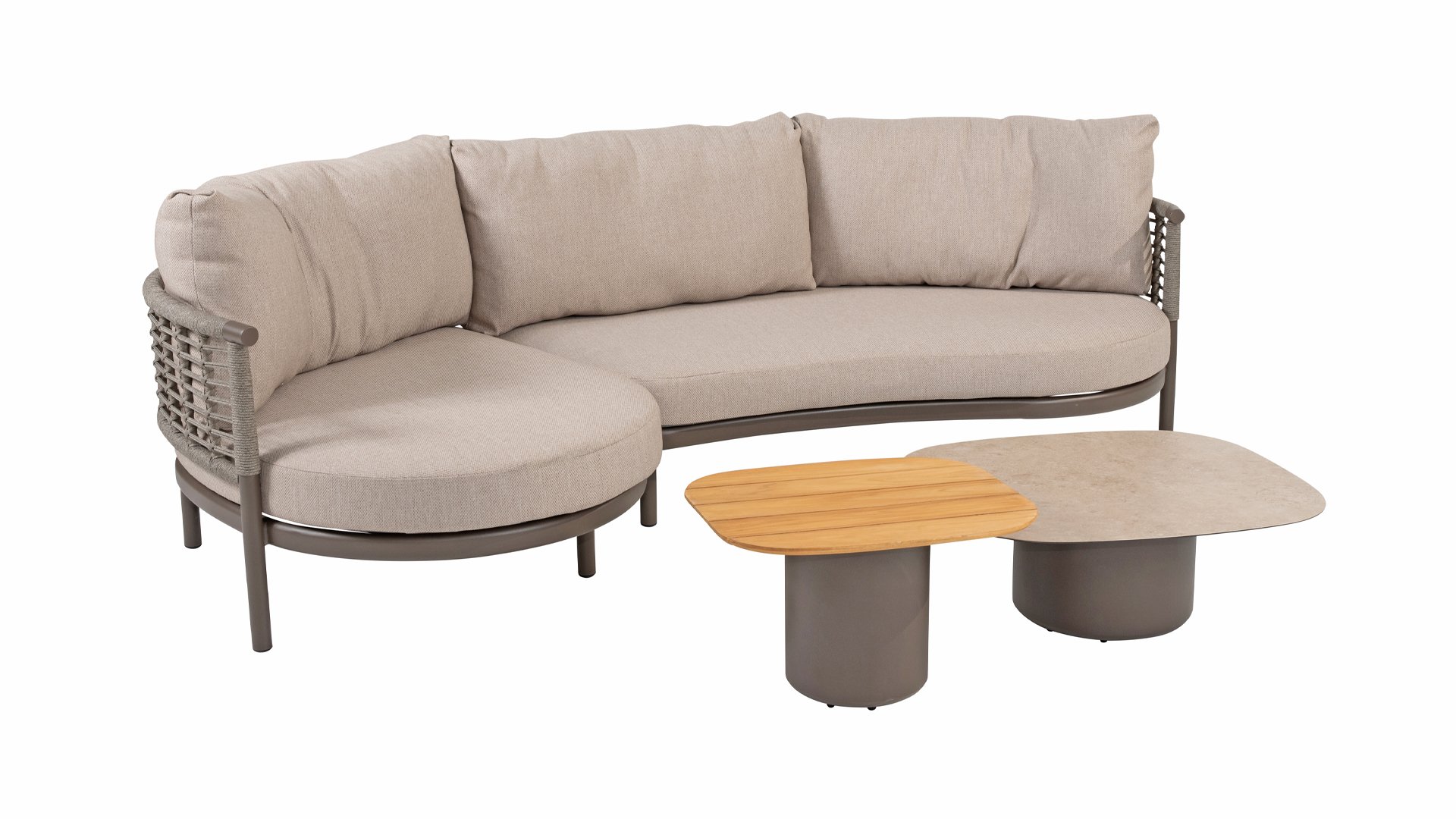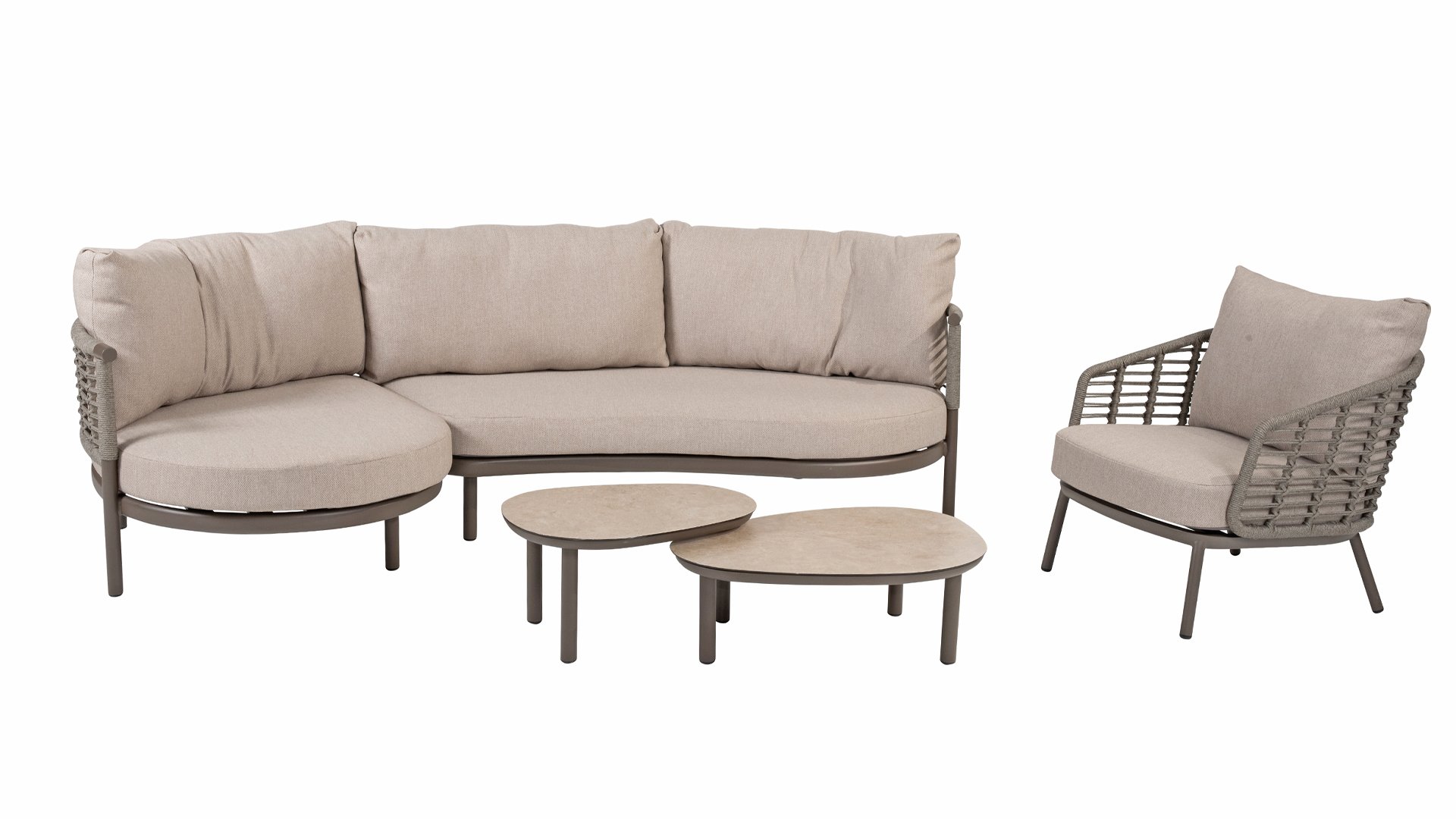 Die Puglia-Serie ist auch in Latte erhältlich. Diese umfasst eine Lounge-Serie, eine Esszimmer-Serie und eine Low-dining.