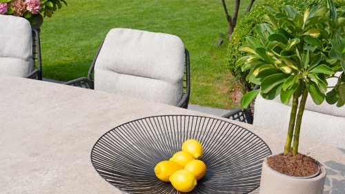 Keramik-Tische erfordern keine aufwändige Pflege. Wein-, Marmeladen- oder Fettflecke verschwinden im Handumdrehen mit Hilfe eines Schwamms oder einer Bürste und etwas Seifenwasser. Auch die im Haushalt verwendeten Säuren hinterlassen keine Spuren. Aber Keramik lässt sich nicht nur leicht reinigen, sondern ist auch ein hygienisches Material. Da es geschmacks- und geruchsneutral ist, können Sie Lebensmittel direkt auf die Keramik-Tischplatte legen. Bitte beachten Sie:Verwenden Sie zur Reinigung Ihrer 4 Seasons Outdoor Gartenmöbel keinen Hochdruckreiniger oder aggressive Reinigungs- oder Bleichmittel. Das kann die Beschichtung dauerhaft beschädigen. Auch können sich dadurch weiße Flecken bilden. Um Schäden vorzubeugen, seien Sie auch vorsichtig mit Feuer, heißen Gegenständen und hartnäckigen Flüssigkeiten wie Öl, Wein oder Ketchup. Um bleibende Flecken oder Verfärbungen zu vermeiden, decken Sie Ihre Möbel nicht dauerhaft ab und stellen auch keine Dekoration dauerhaft auf die Möbel.