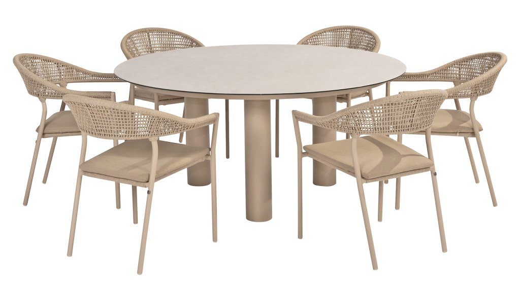 In der Taste by 4 Seasons Outdoor Donato-Serie gibt es einige Möglichkeiten, so ist er als Esstisch in den Farben erhältlich: Taste 4Seasons Donato Tisch Ø160cm Latte & Taste 4Seasons Donato Tisch Ø160 cm Terre, was es Ihnen ermöglicht, das perfekte Match für Ihr Interieur zu wählen. Um die Mayonnaise oder die Milch an die Person gegenüber zu reichen, fügen Sie einfach den: Taste 4Seasons Donato Lazy Susan dem Ganzen hinzu. Außerdem ist auch eine Low-Dining-Variante in der Farben Latte & Terre erhältlich, ideal für ein informelles und entspanntes Speiseerlebnis: Taste 4Seasons Donato Low Dining Tisch Ø160cm Latte, Taste 4Seasons Donato Low-Dining Tisch Ø160 cm Terre. Was gibt es noch?