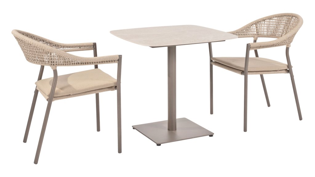 Die Terrassenmöbelserie Taste Sienna besticht durch ihren einzigartigen Stil, der durch moderne Seilelemente noch unterstrichen wird! Die Schönheit liegt im Detail. Die Rückenlehne der Sienna-Essgruppe von Taste by 4Seasons ist aus Seil geflochten und bietet so eine stabile und zugleich bequeme Sitzfläche. Das Gestell erzeugt ein verspieltes und minimalistisches Zusammenspiel fließender Linien und bildet eine solide Basis. Ein wahrer Augenschmaus! Die Sienna ist in den Farben Latte, Terre und Anthrazit erhältlich.