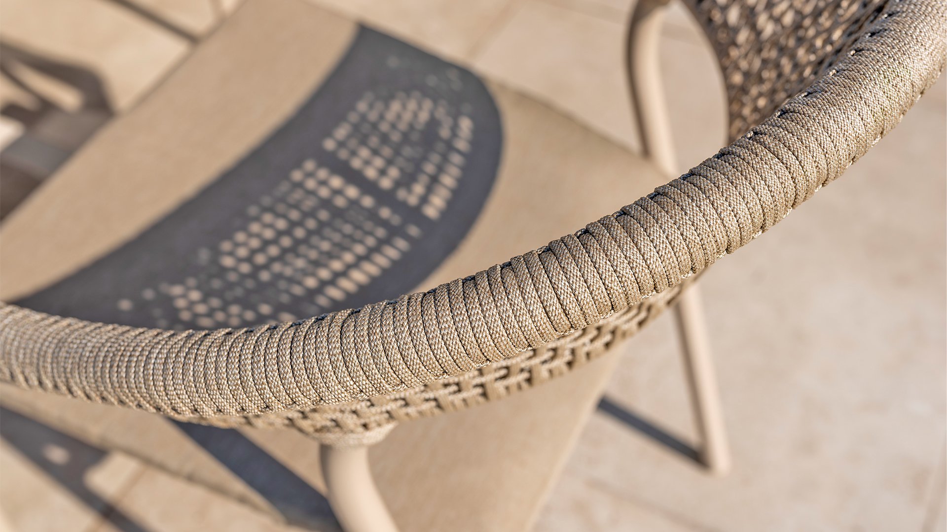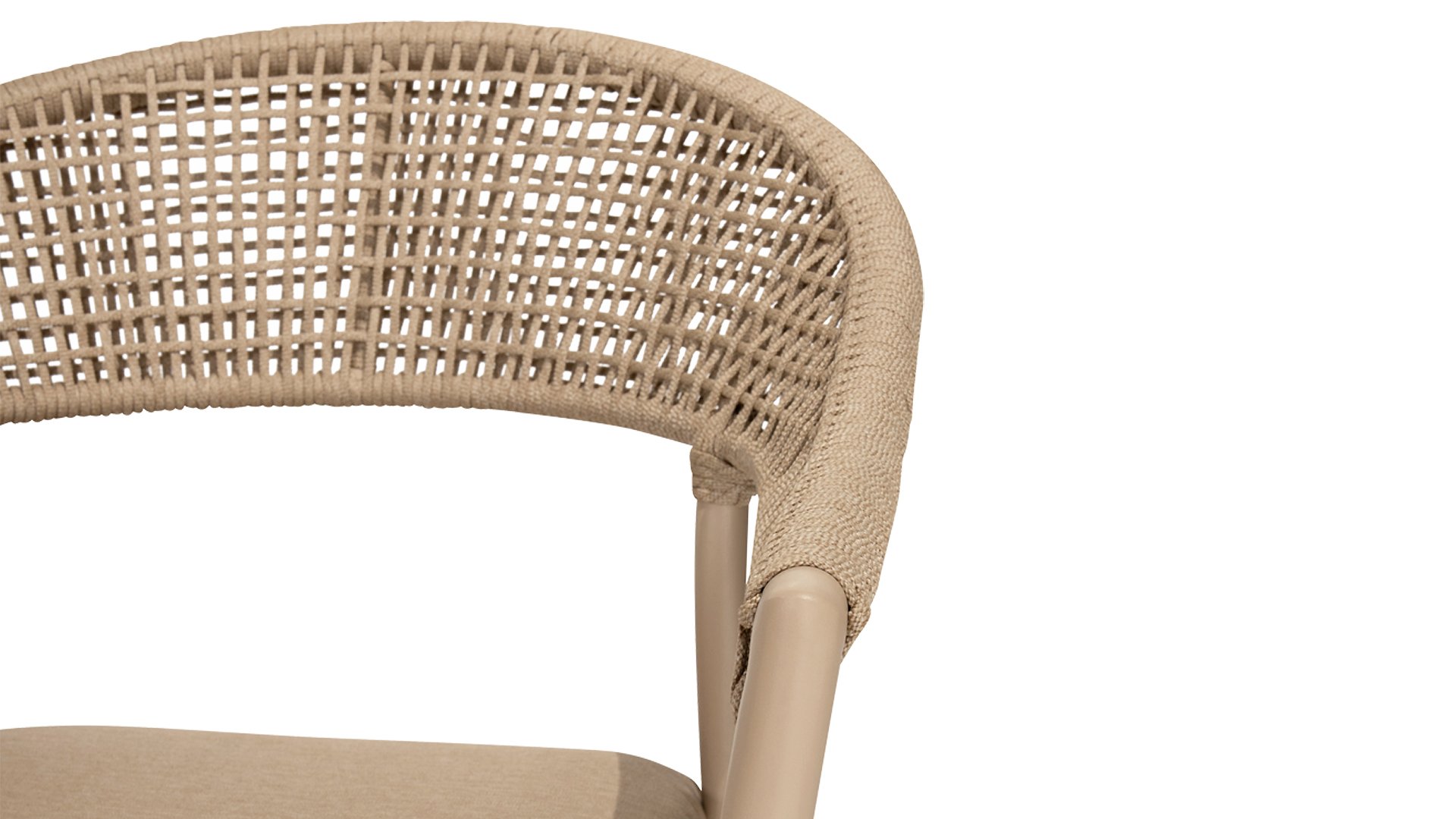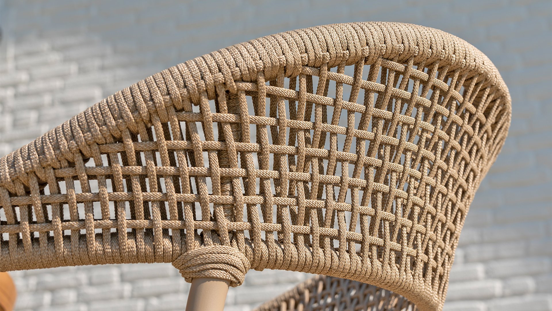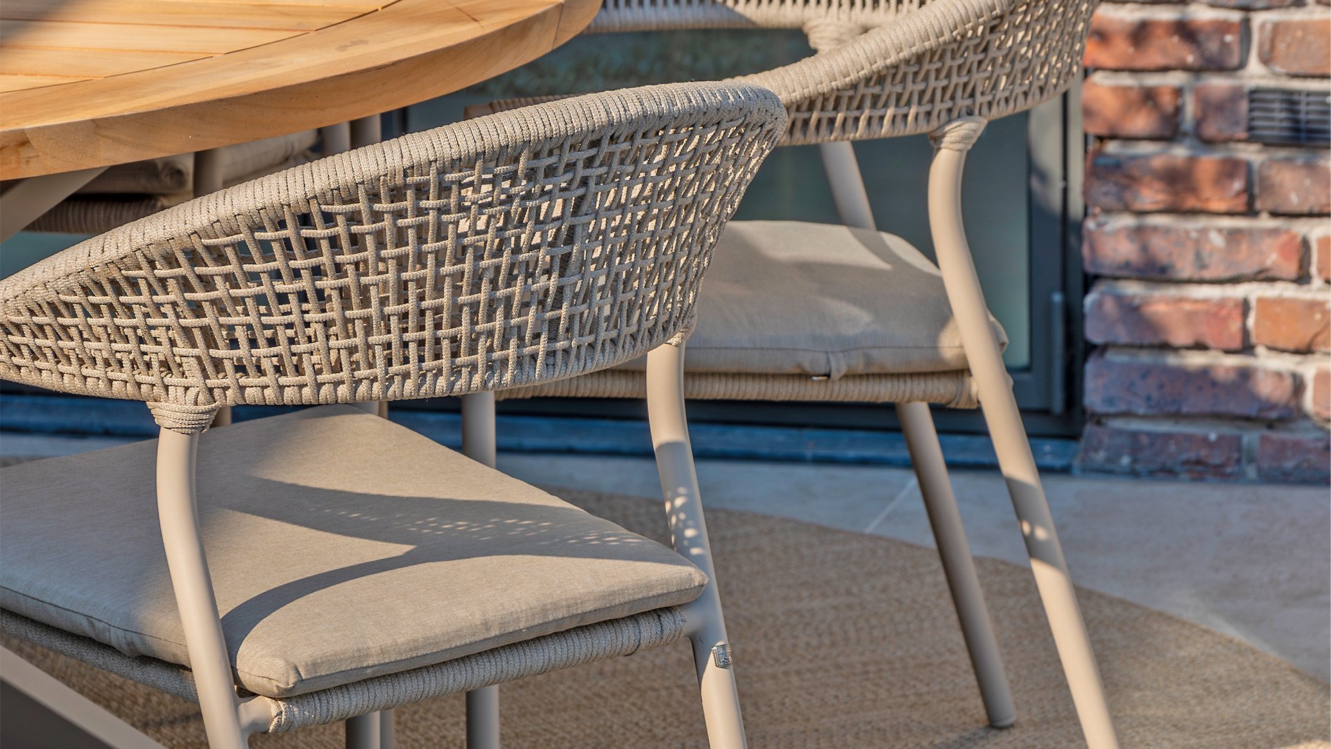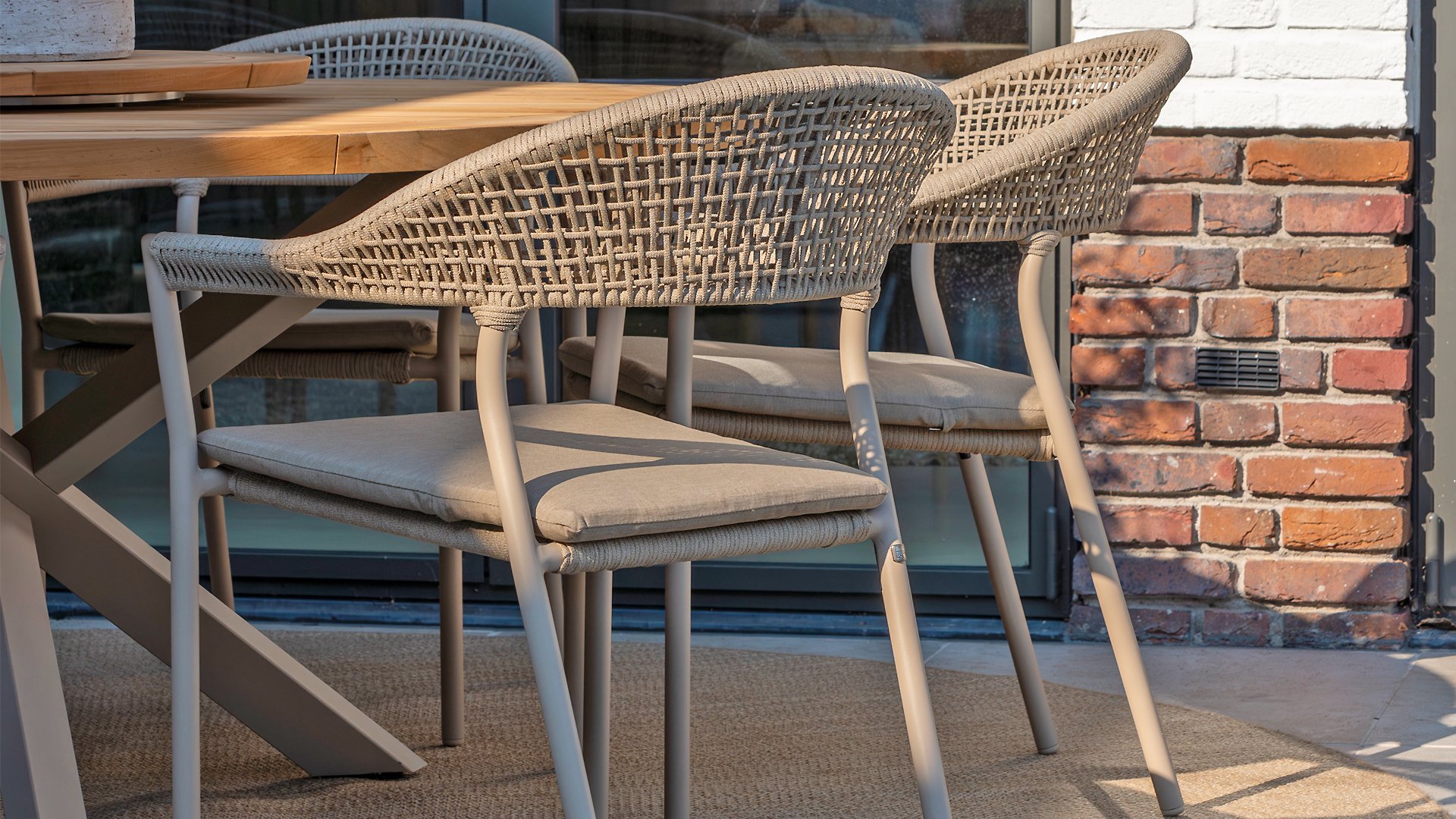 Die Terrassenmöbelserie Taste Sienna besticht durch ihren einzigartigen Stil, der durch moderne Seilelemente noch unterstrichen wird! Die Schönheit liegt im Detail. Die Rückenlehne der Sienna-Essgruppe von Taste by 4Seasons ist aus Seil geflochten und bietet so eine stabile und zugleich bequeme Sitzfläche. Das Gestell erzeugt ein verspieltes und minimalistisches Zusammenspiel fließender Linien und bildet eine solide Basis. Ein wahrer Augenschmaus! Die Sienna ist in den Farben Latte, Terre und Anthrazit erhältlich.